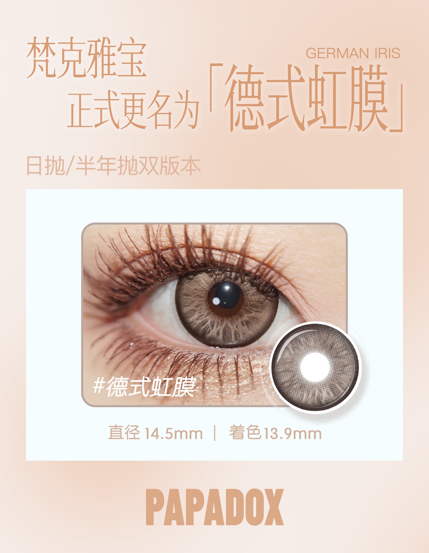 Papadox 梵克雅宝【更名为德式虹膜】 日抛 十片 14.5mm 参考着色 13.9mm 基弧 8.6 含水 40% 新锐国货