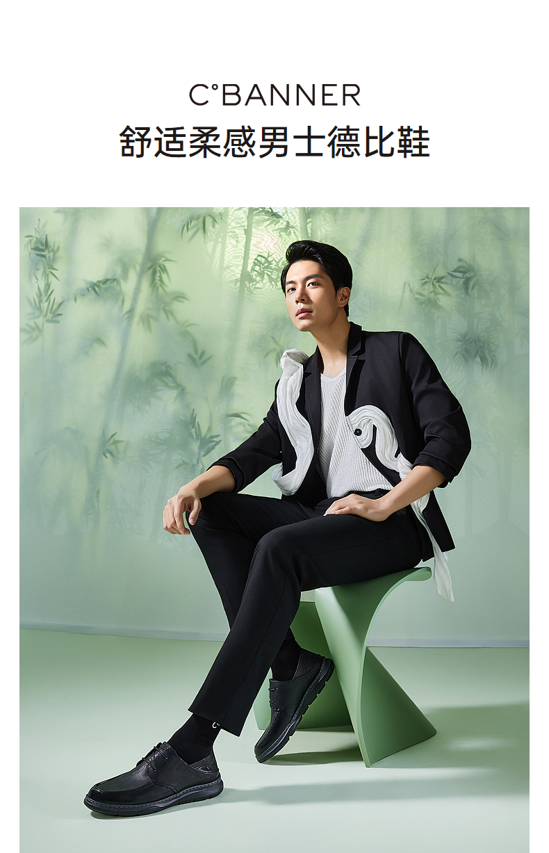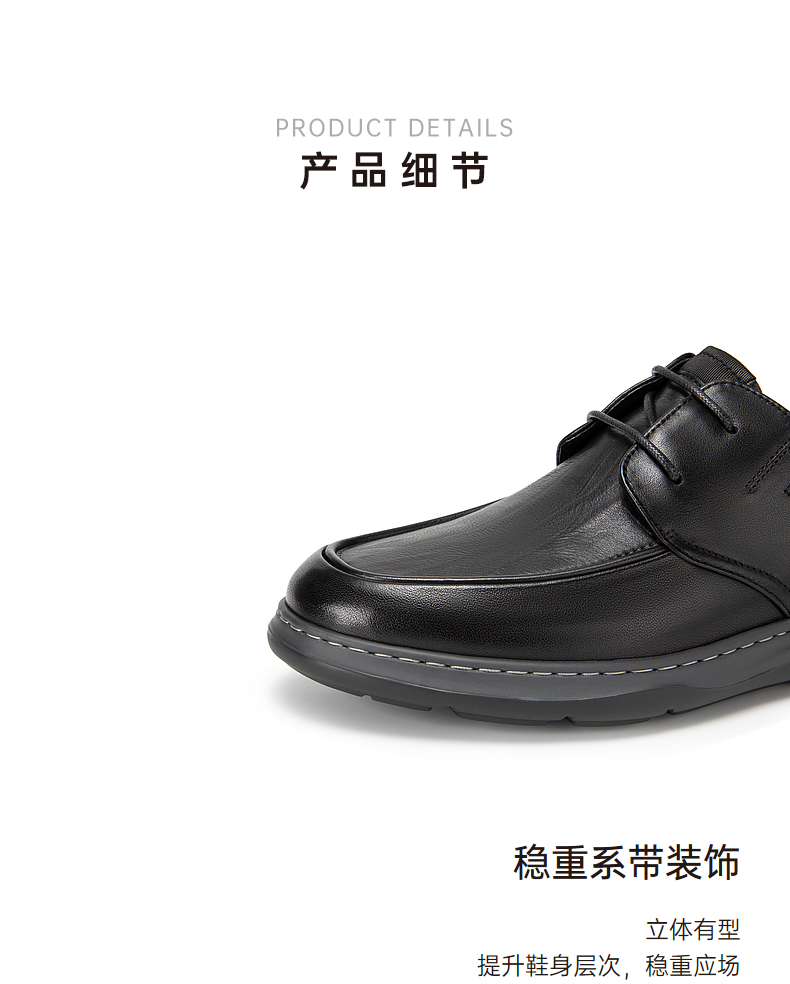 千百度男鞋正装皮鞋春夏真皮男士休闲商务皮鞋通勤系带A24135336
