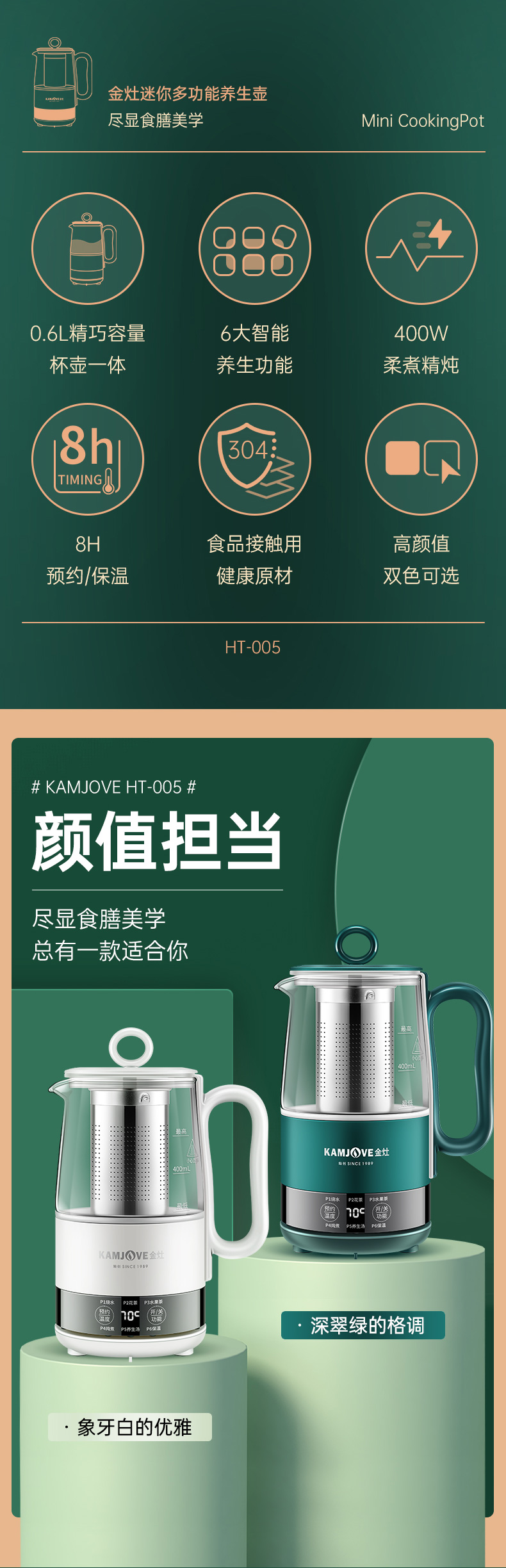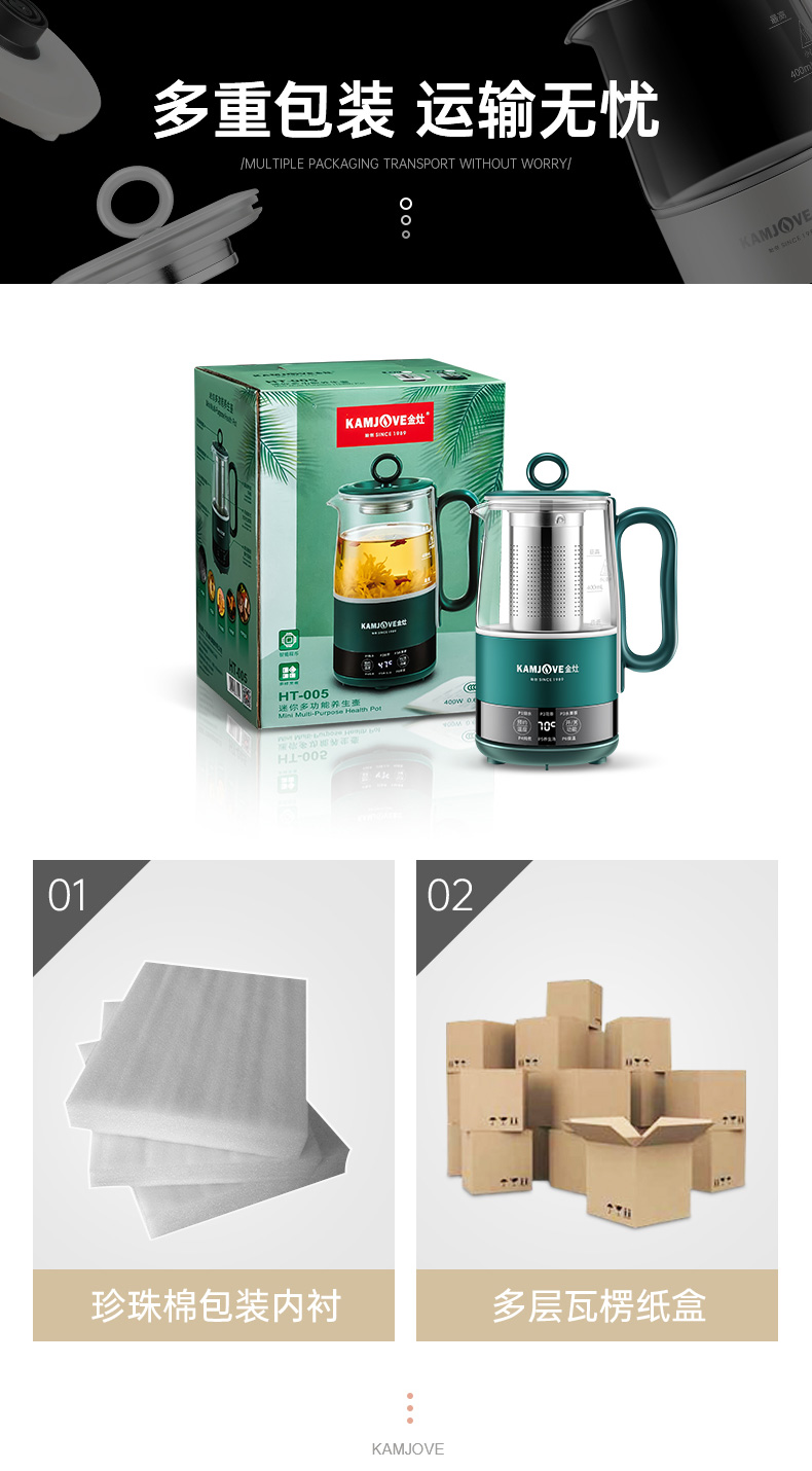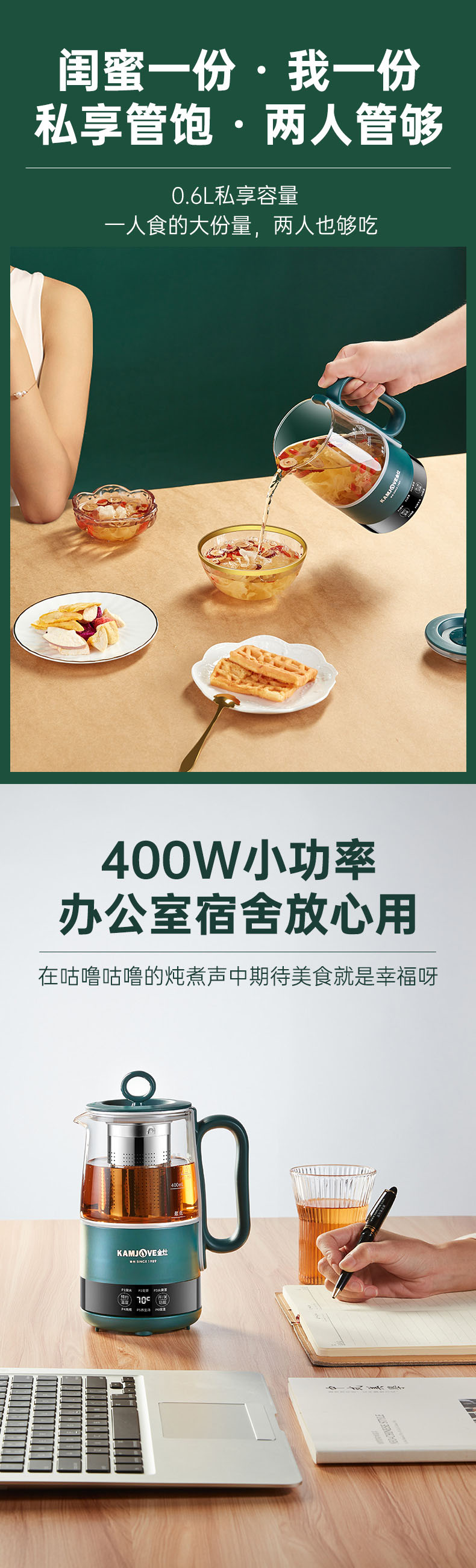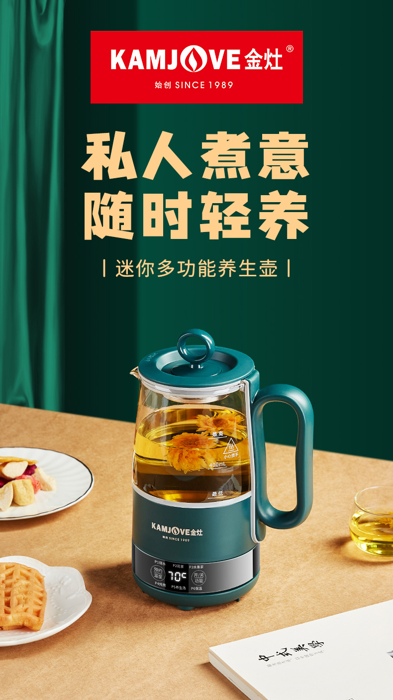 金灶多功能mini便携小型多功能养生壶0.6L(墨绿色)办公室个人煮茶壶HT-005