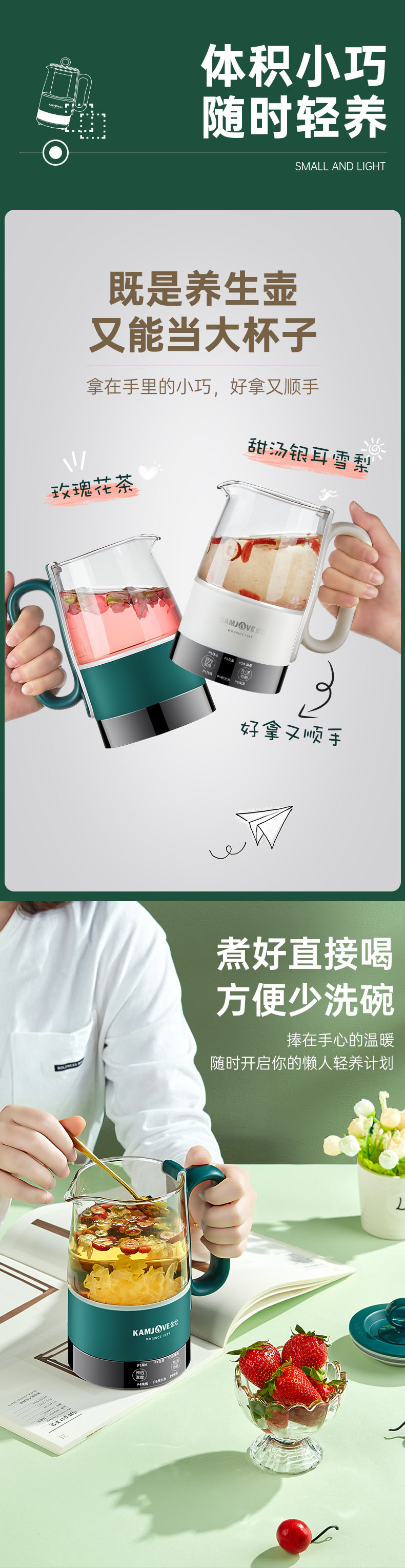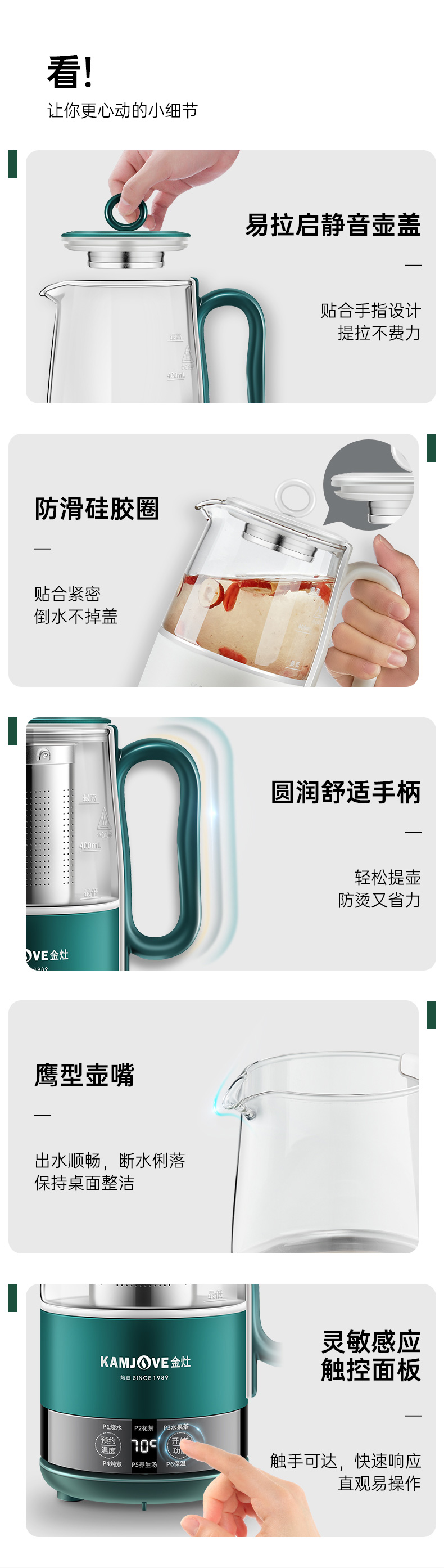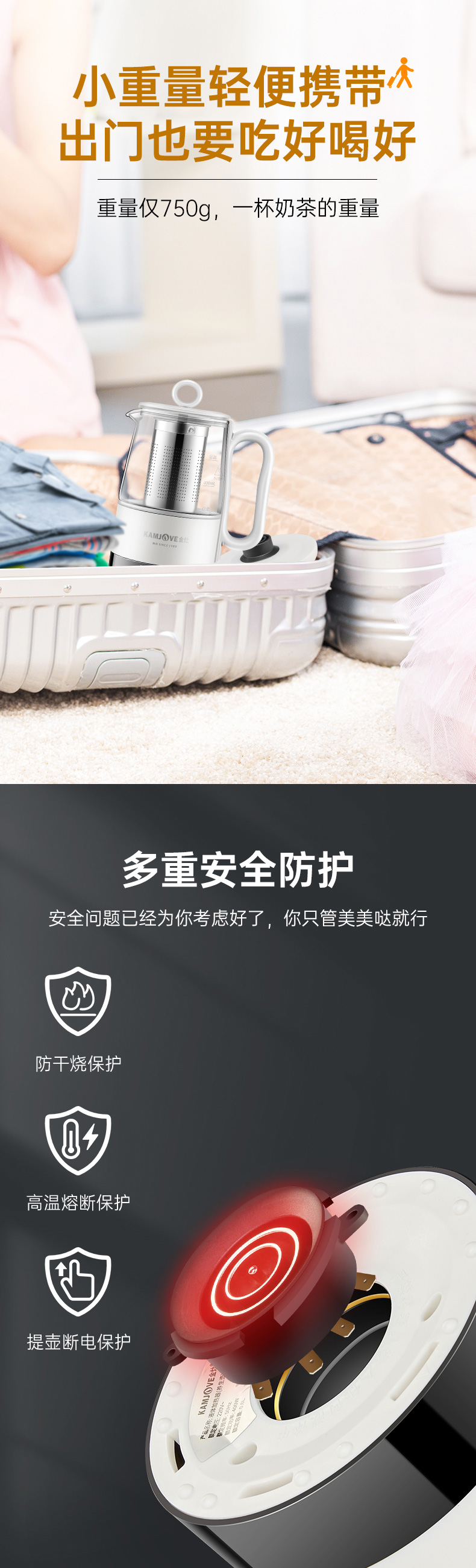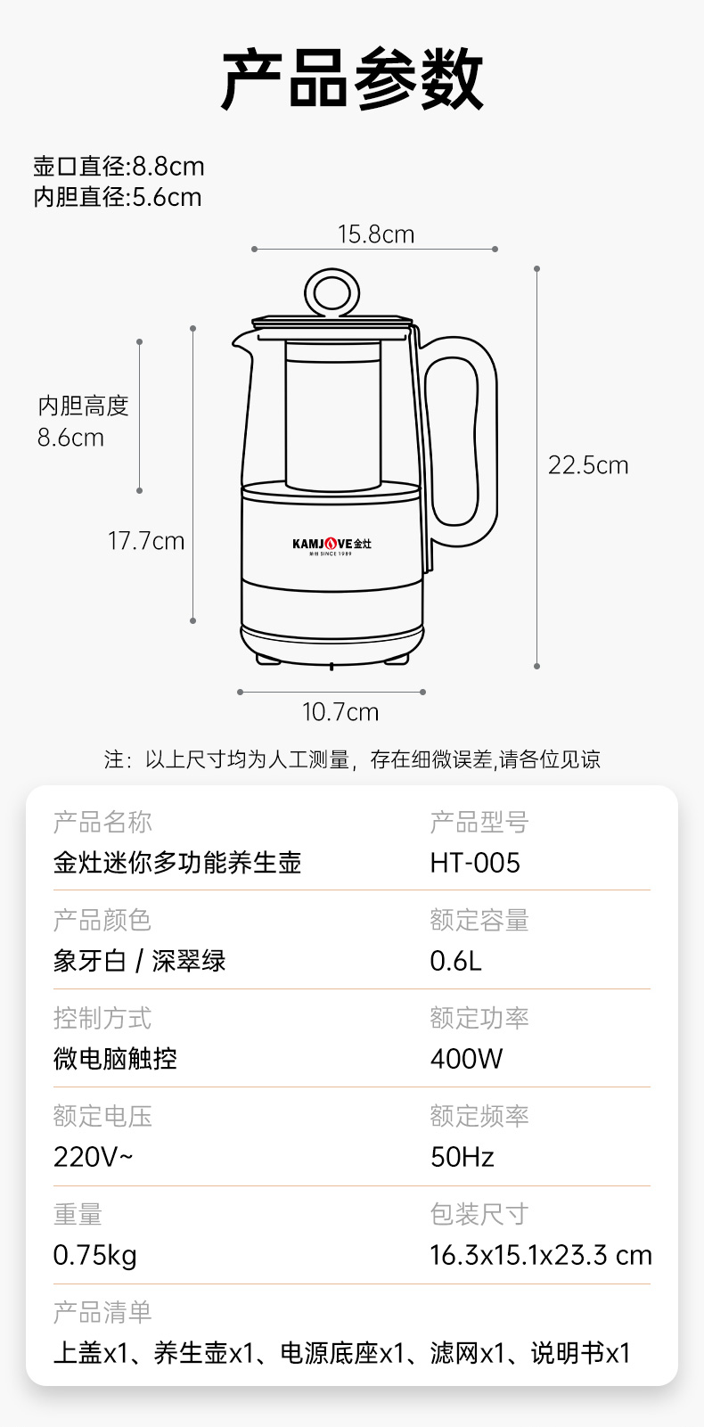 金灶多功能mini便携小型多功能养生壶0.6L(墨绿色)办公室个人煮茶壶HT-005