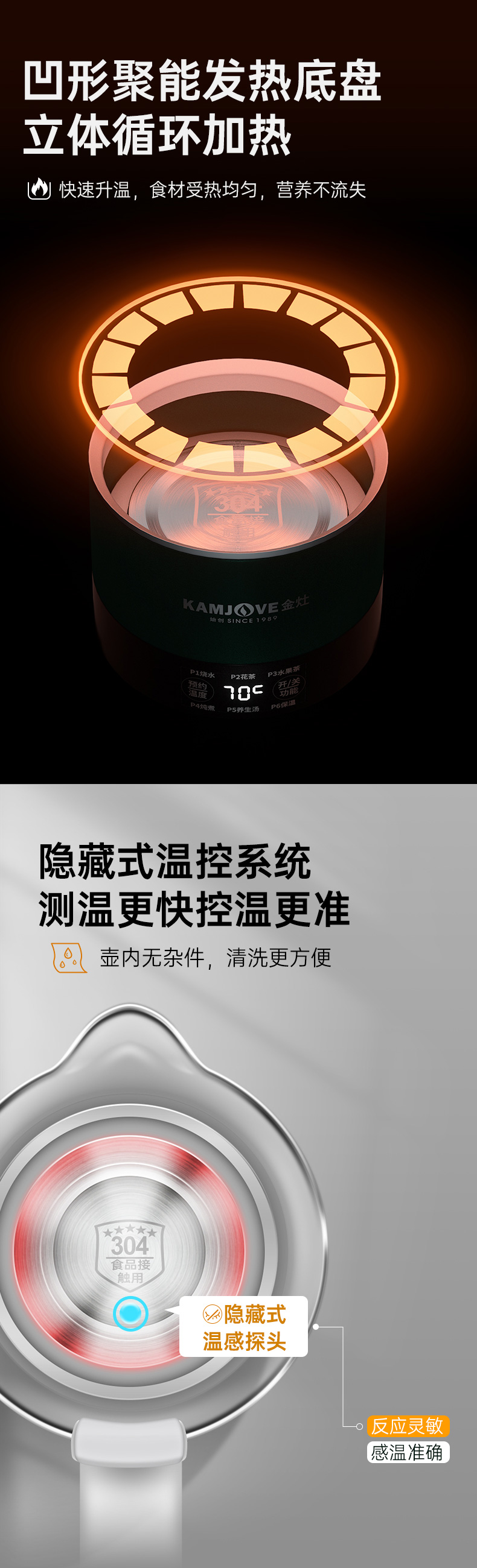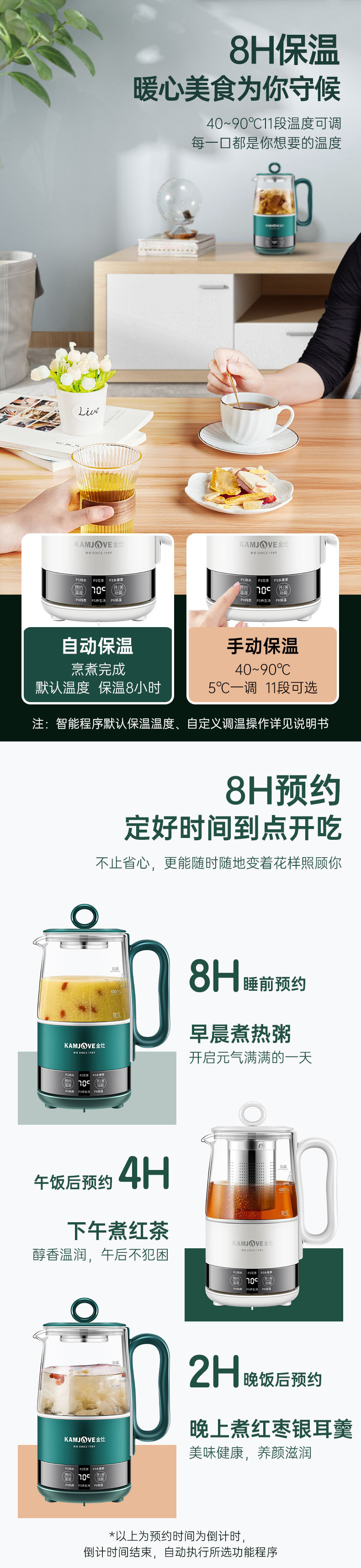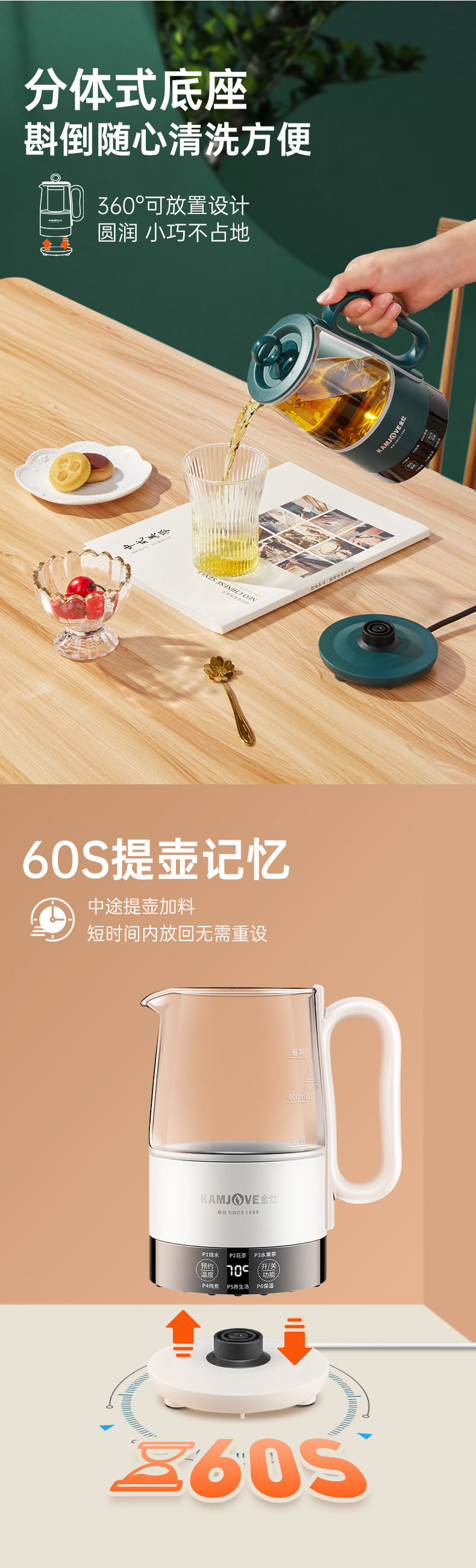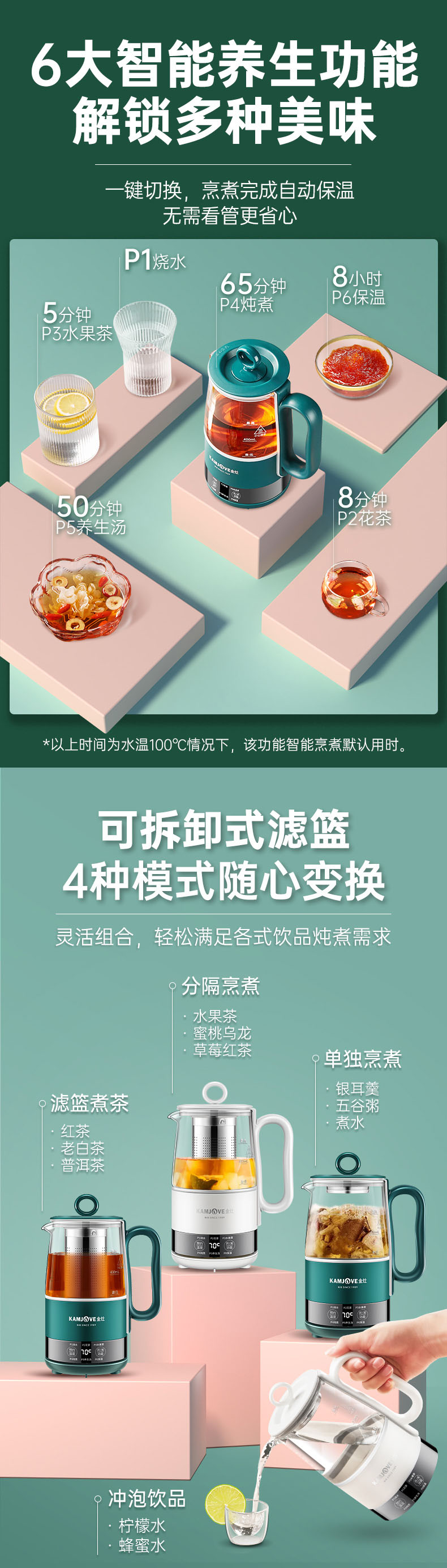 金灶多功能mini便携小型多功能养生壶0.6L(墨绿色)办公室个人煮茶壶HT-005