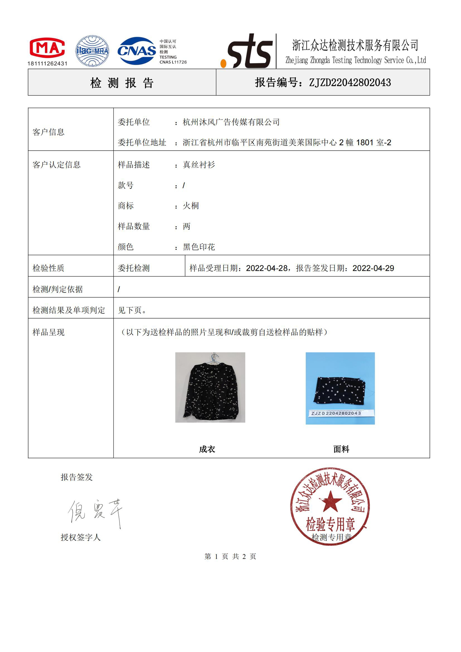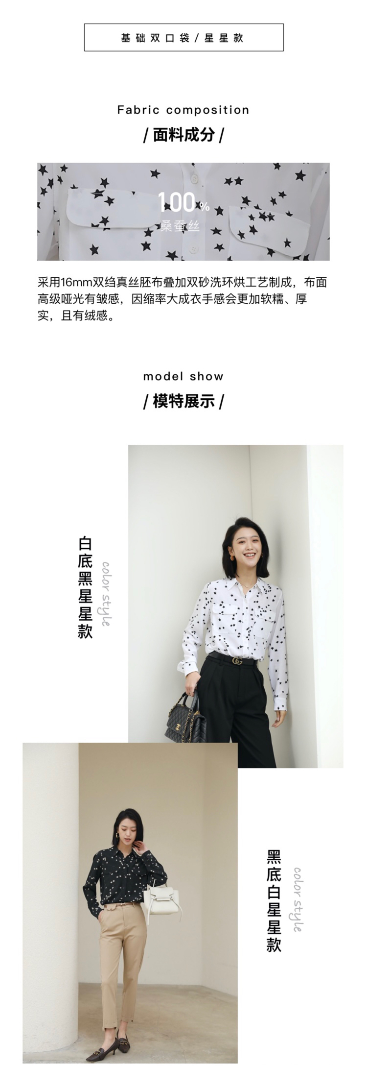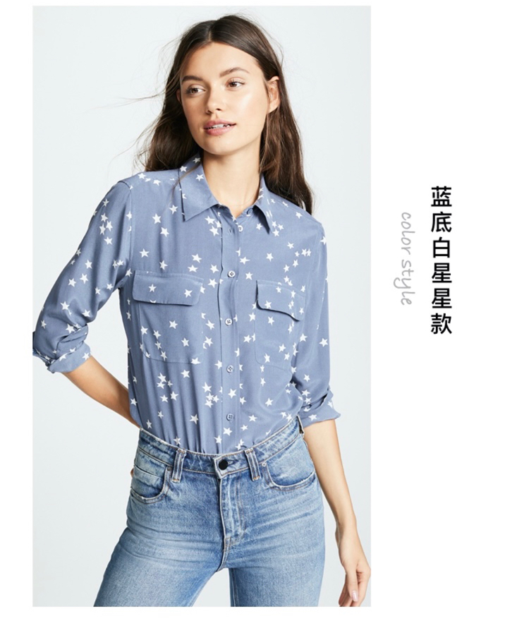 火桐hooton 双口袋星星印花长袖款真丝衬衫