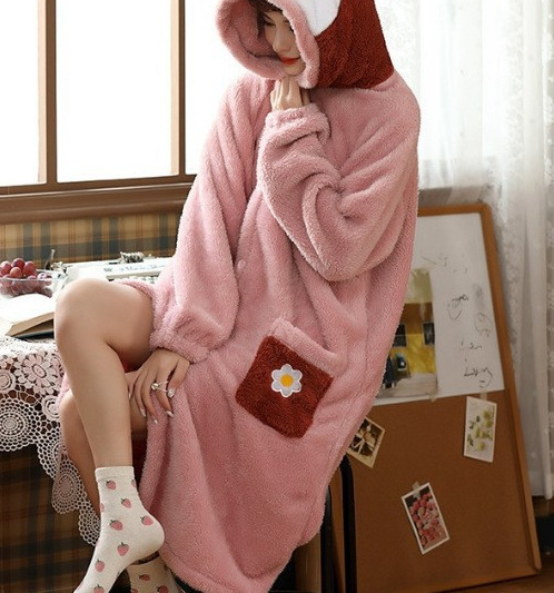 史迪仔睡袍冬季长毛舒棉绒美乐蒂大眼仔家居服加厚可外穿家居服 商品图0