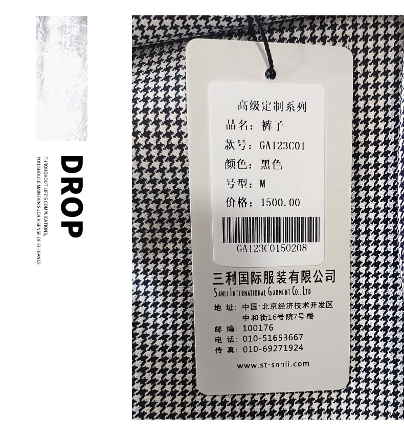 ST.SANLI【成衣系列】时尚千鸟格直筒裤GA123C01