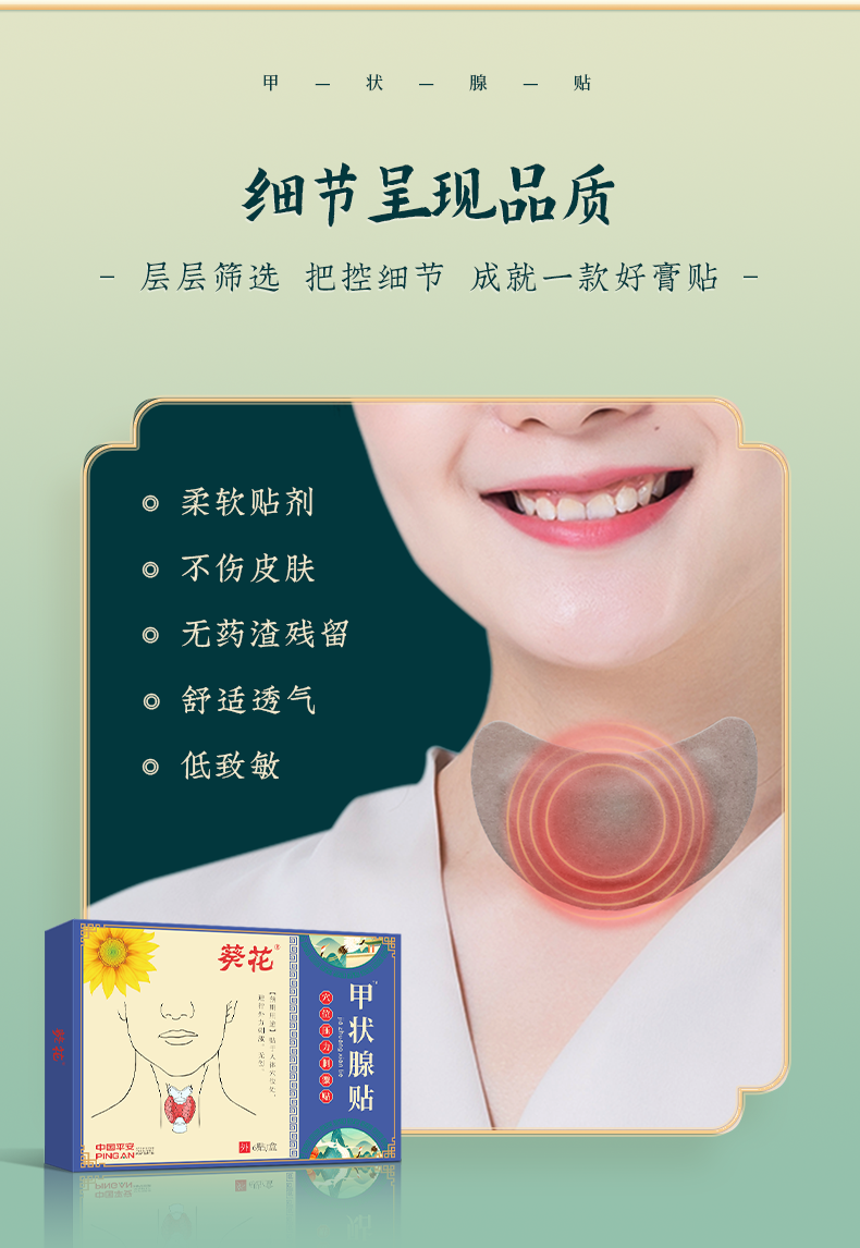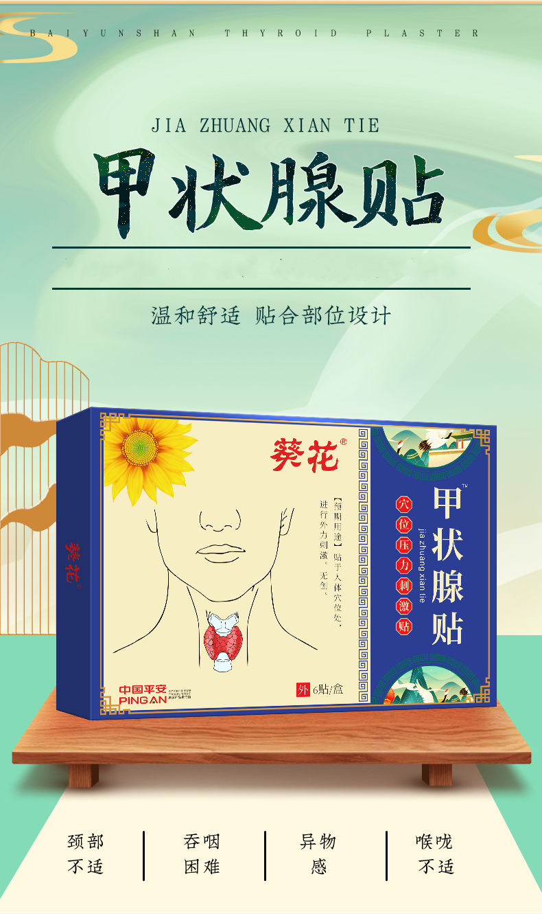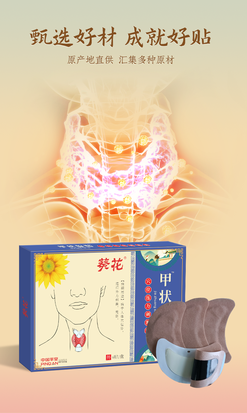 【国民品牌】葵花甲状腺贴 咽部不适 吞咽困难 咽喉不适 3天散结消zhong止tong 温和配方 6贴/盒