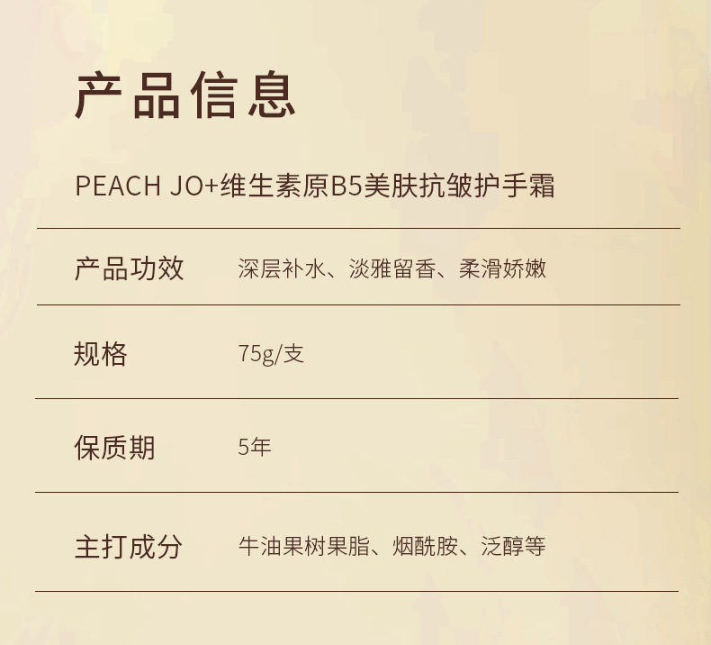 「19.9到手3支」PEACH JO+维生素原B5护手霜 保湿滋润补水香水护手霜美肤抗皱男女美容护肤