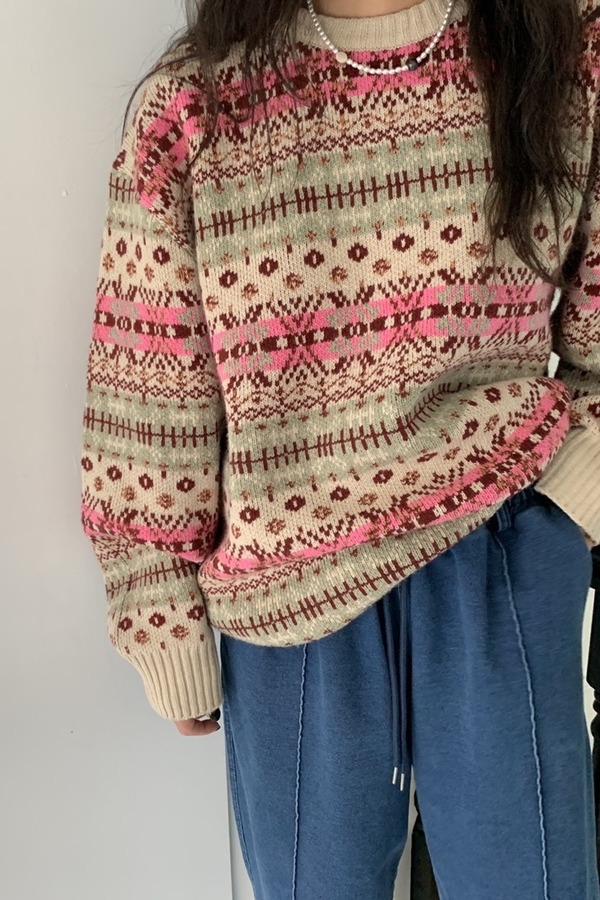 LNNNS 菱格纹撞色慵懒针织上衣 17731