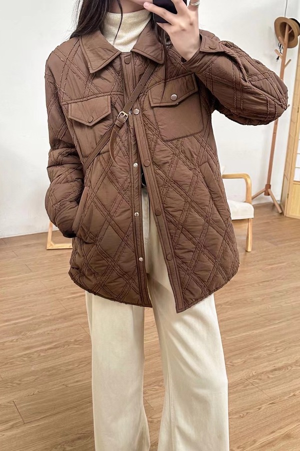 Kai & Kiera 复古美拉德菱格纹翻领棉服外套 19399