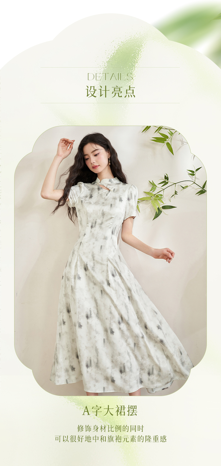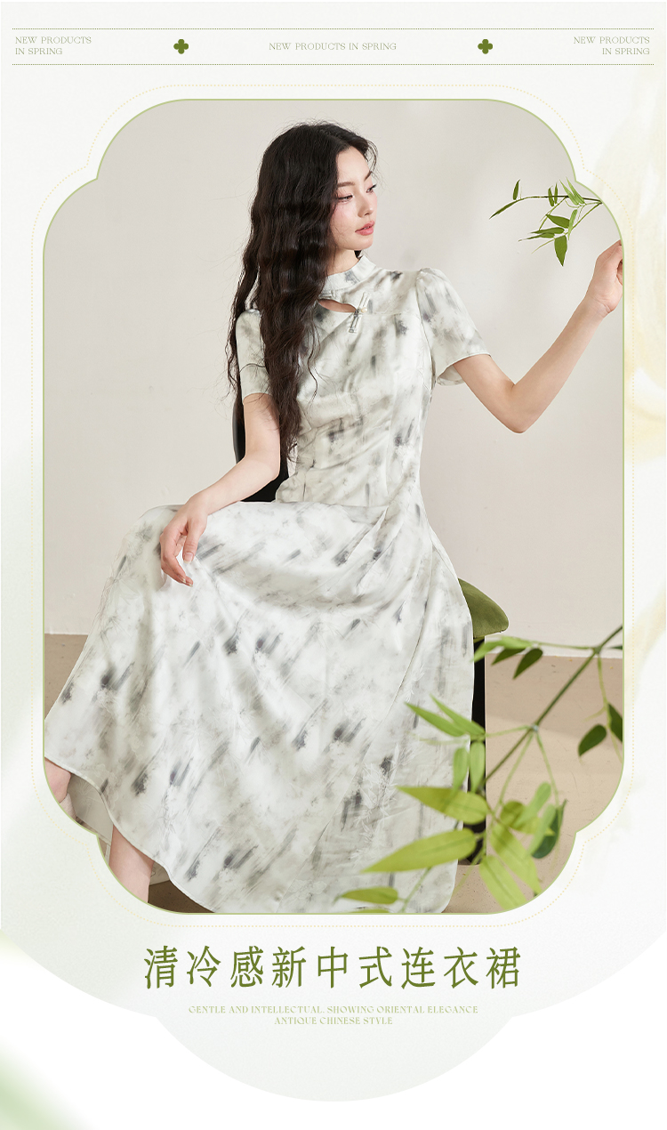 新中式国风连衣裙年新款古典中式水墨印花改良旗袍V0440142/V0050563