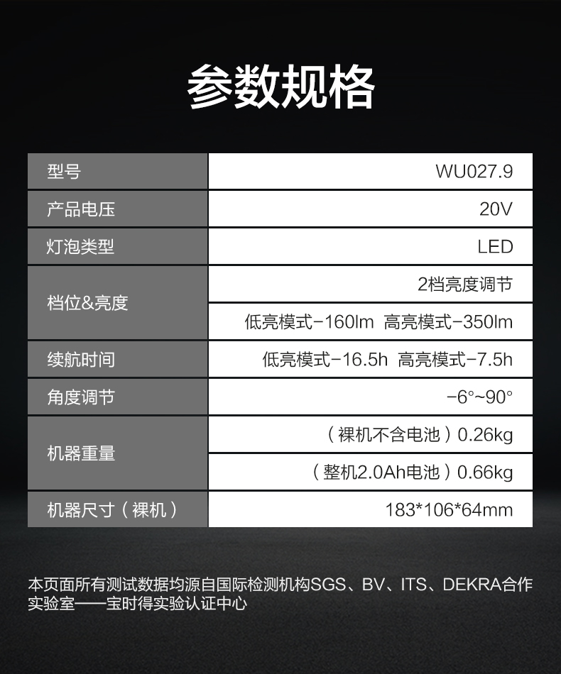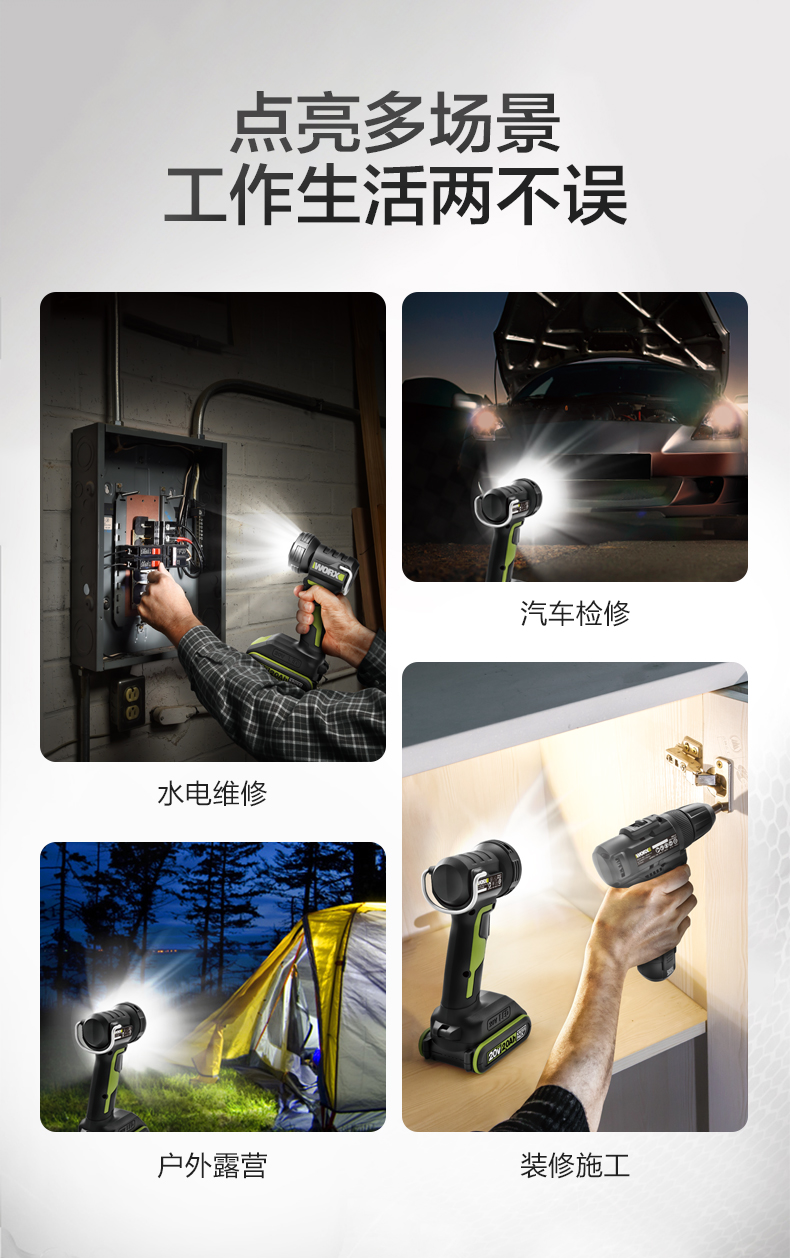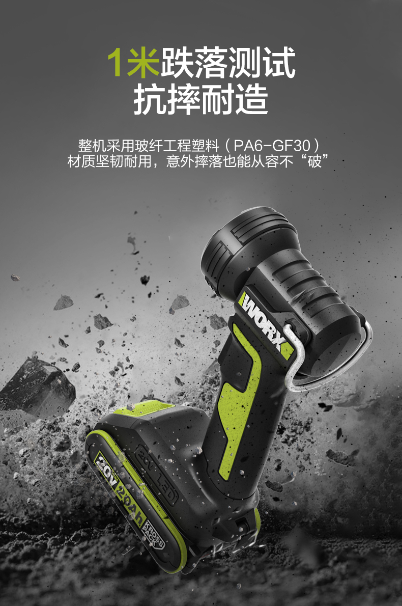 威克士WU027锂电投光灯多功能户外便携式射灯手提式充电LED照明灯