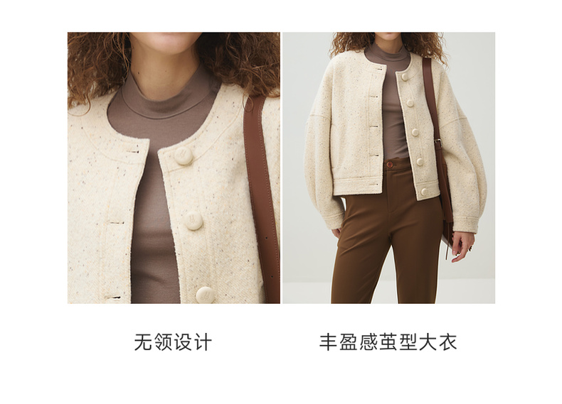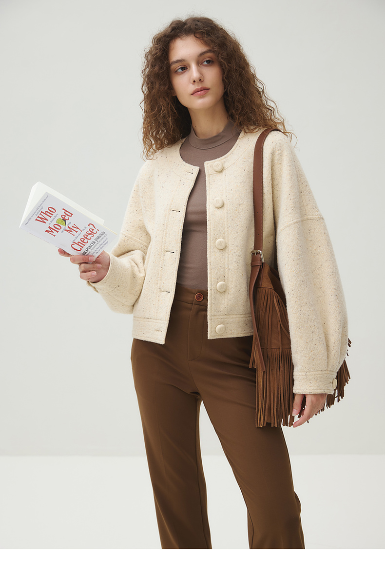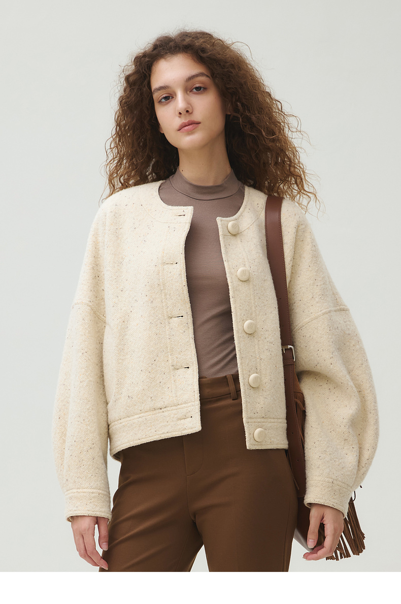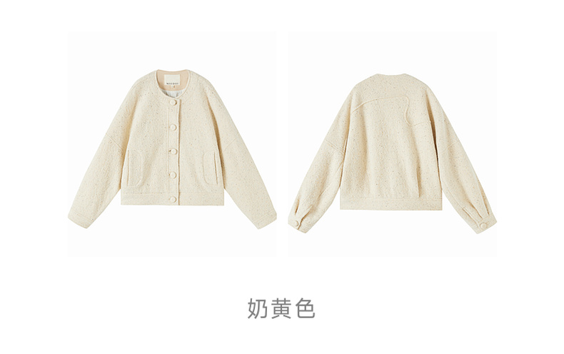 谜底外套长袖女2025秋新品圆领百搭面包扣花呢料短大衣253MW1256