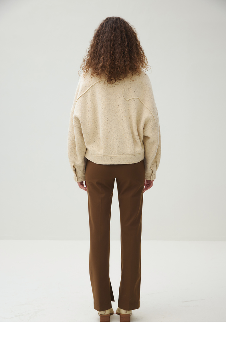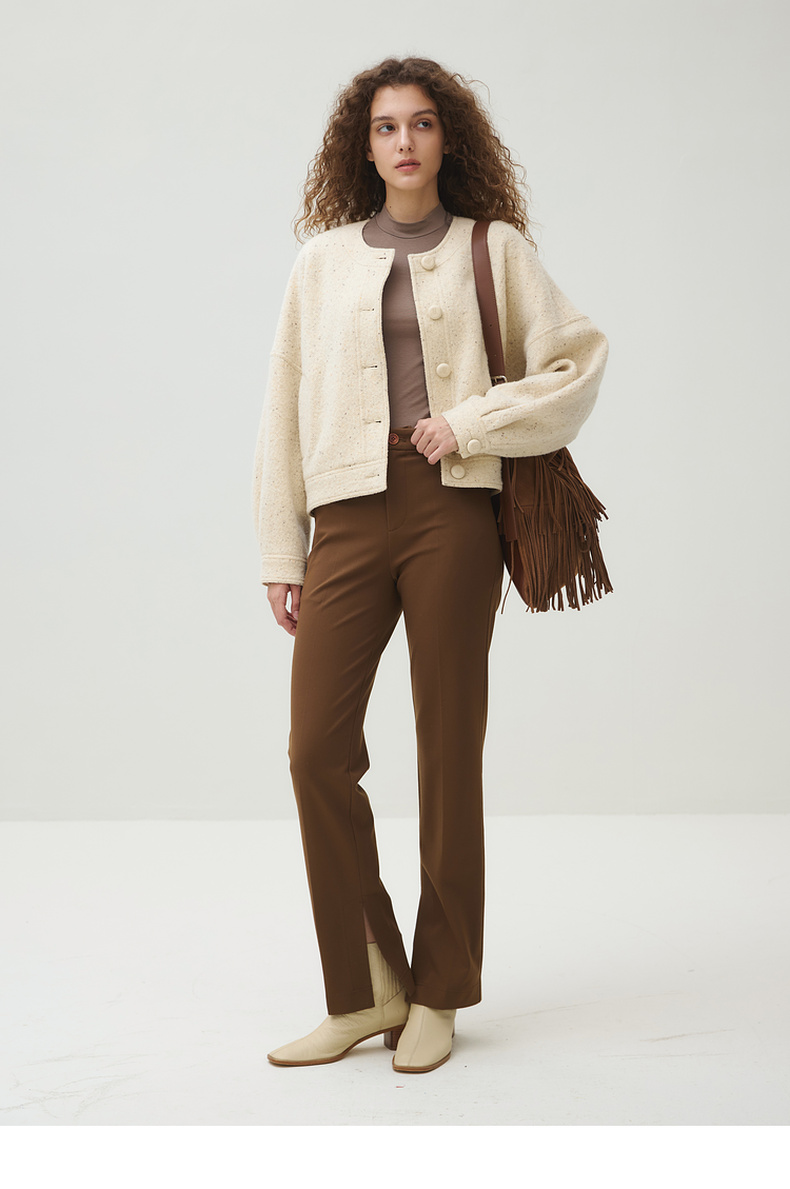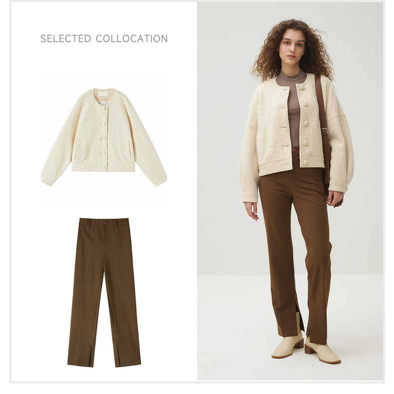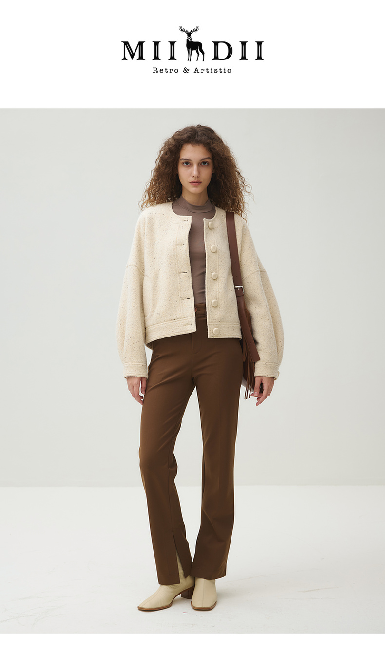 谜底外套长袖女2025秋新品圆领百搭面包扣花呢料短大衣253MW1256