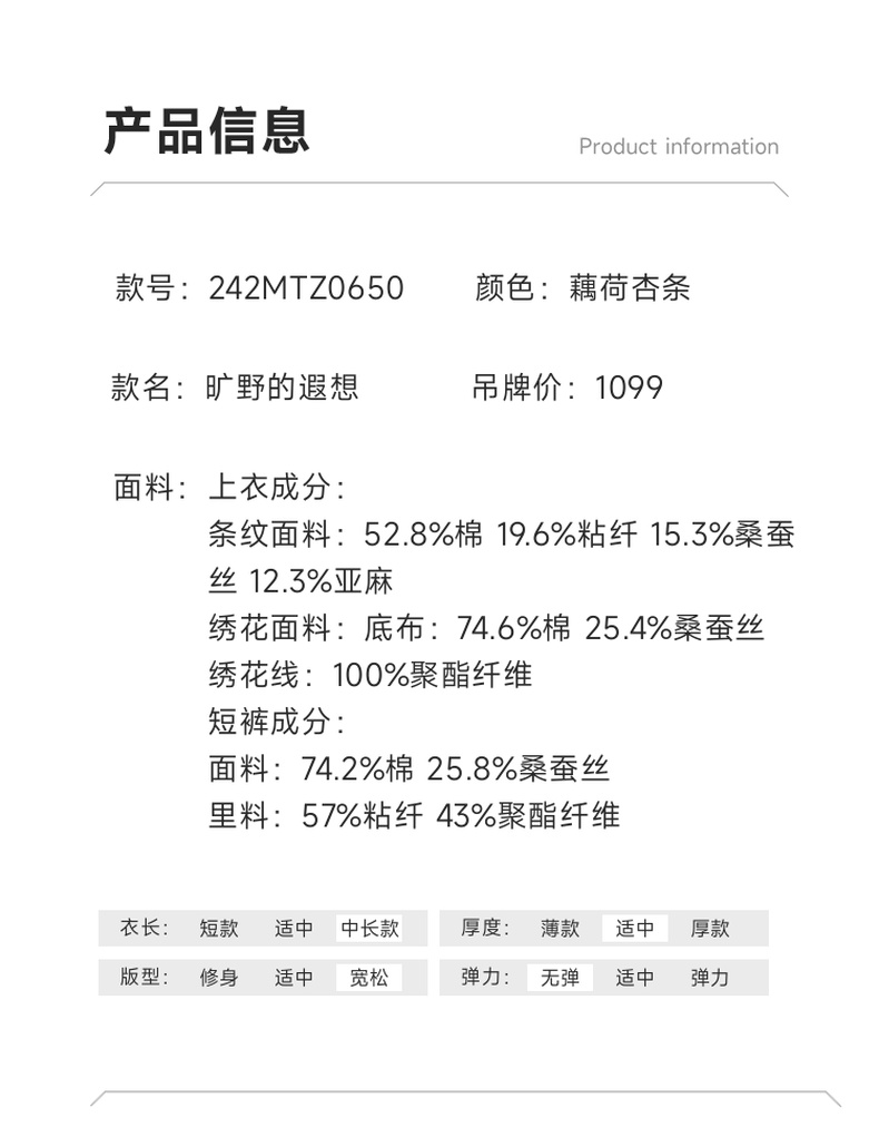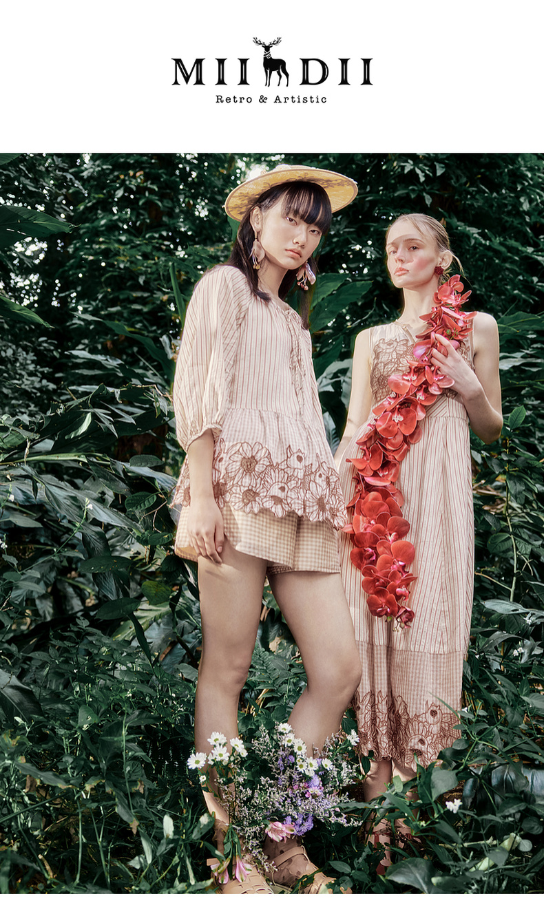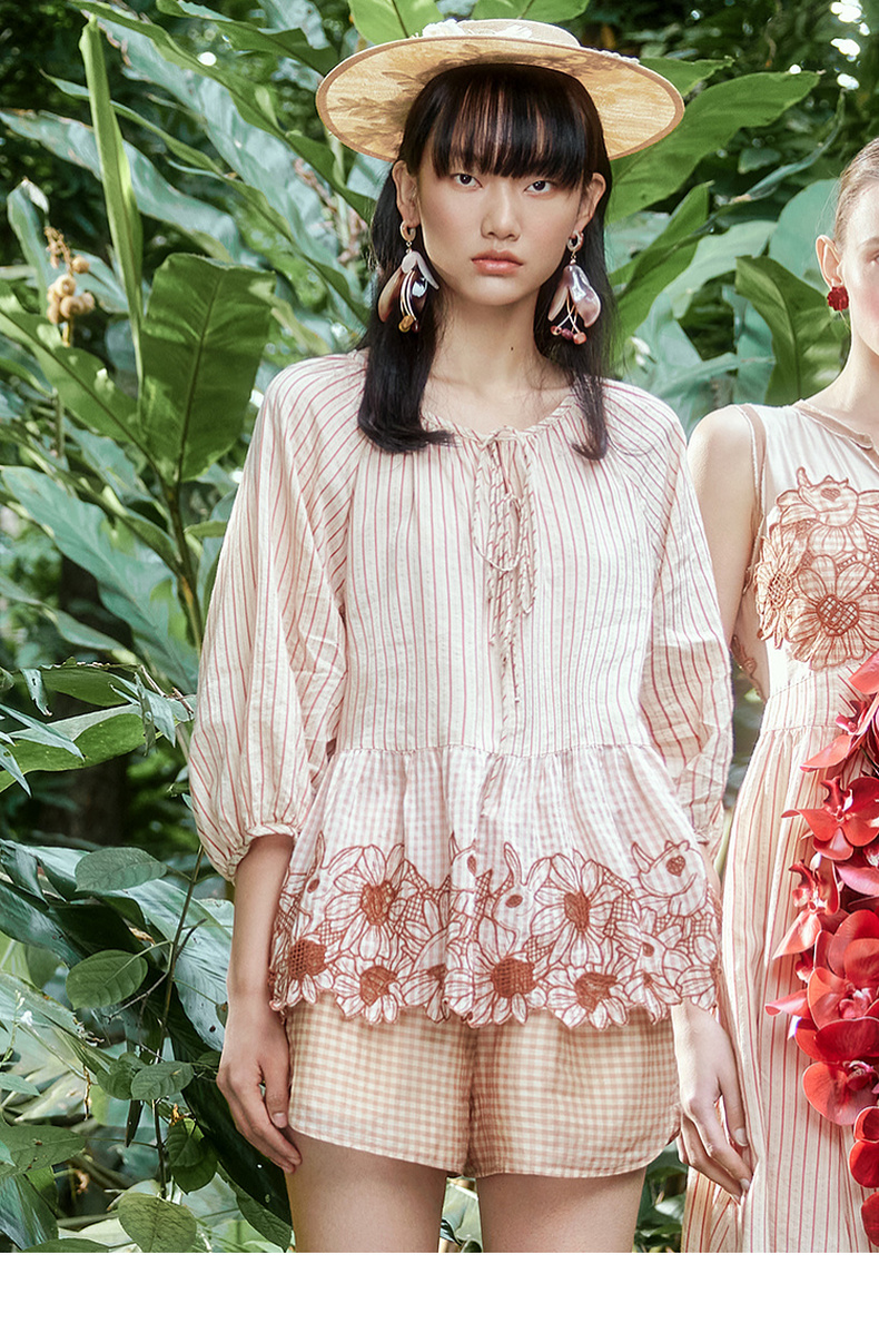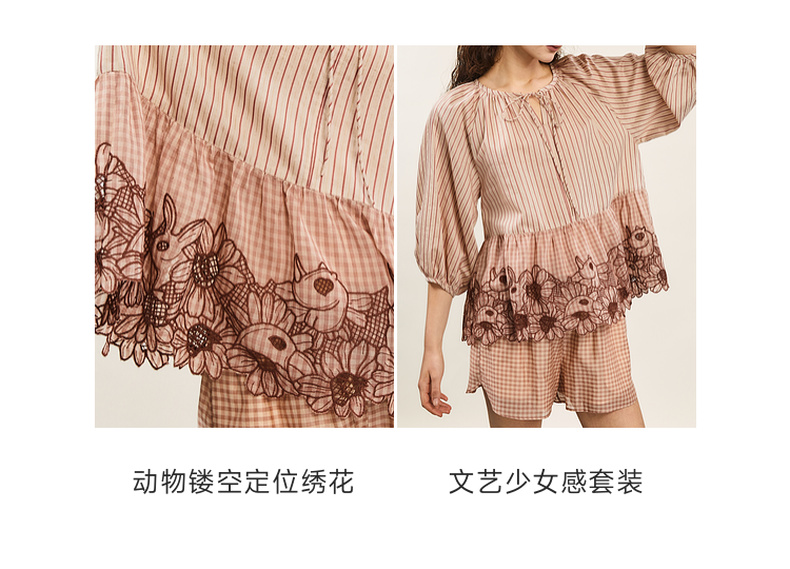谜底套装女士2024年夏季新款文艺风刺绣宽松上衣+短裤242MTZ0650