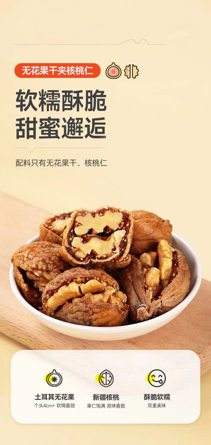 【甜蜜邂逅!无花果干夹核桃仁】甄选土耳其大无花果,软糯香甜,果糖细腻,如糖包子一样,包裹大量糖蜜,新疆特产零食果干无花果干蜜饯L