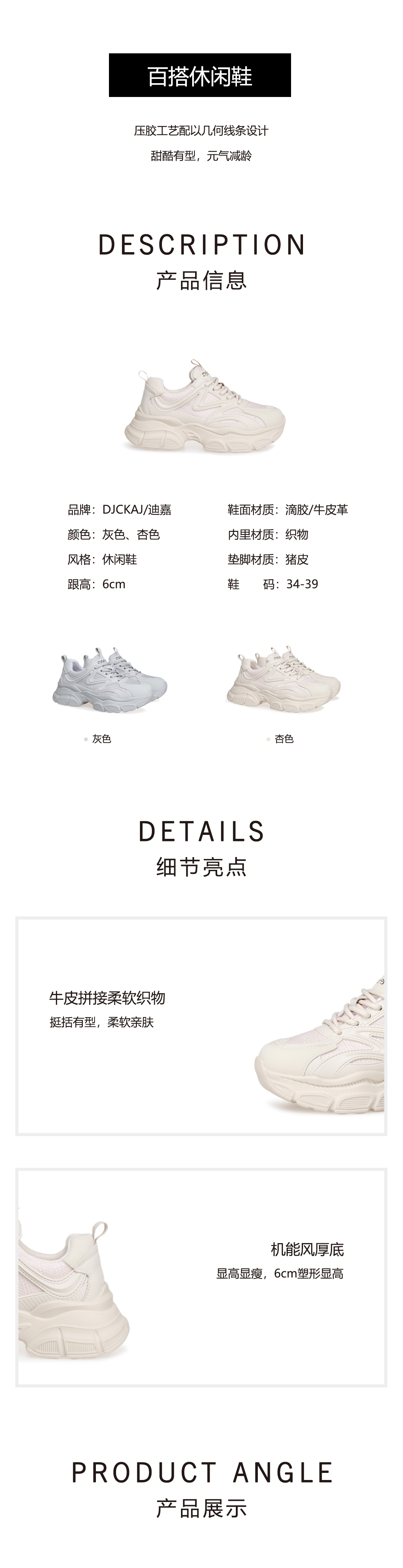豪麟名鞋奥莱迪嘉女鞋时尚老爹鞋滴胶/牛皮革DJXXO51WX214杏色 原价1660元
