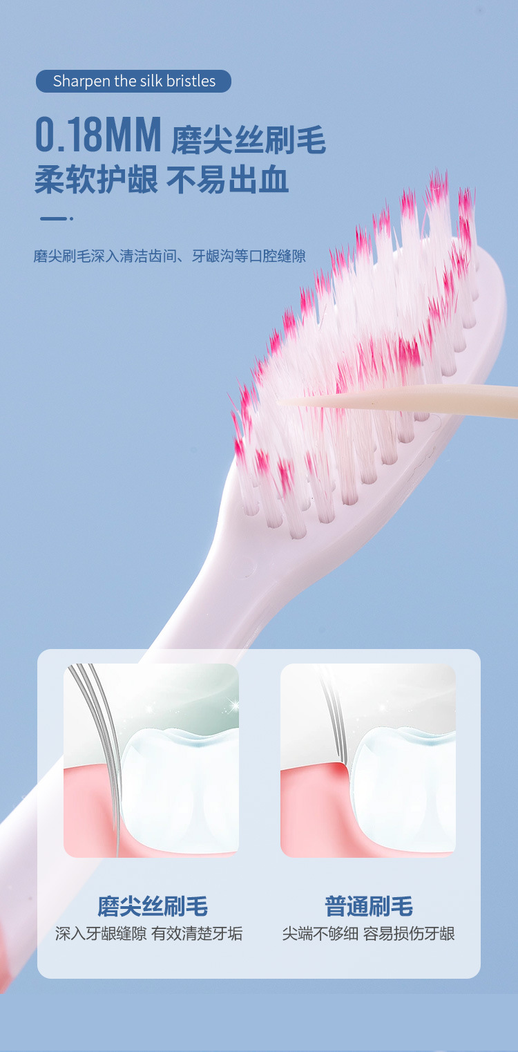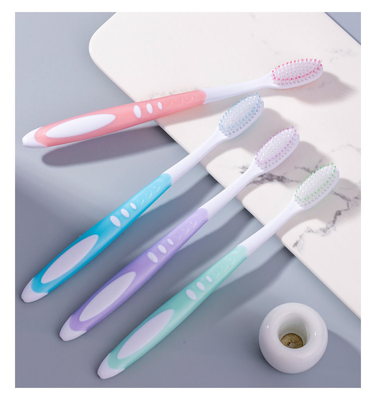 「19.9到手12支!独立包装」笑然防滑硅胶软毛牙刷 成人家用口腔护理大头圆孔高密牙刷