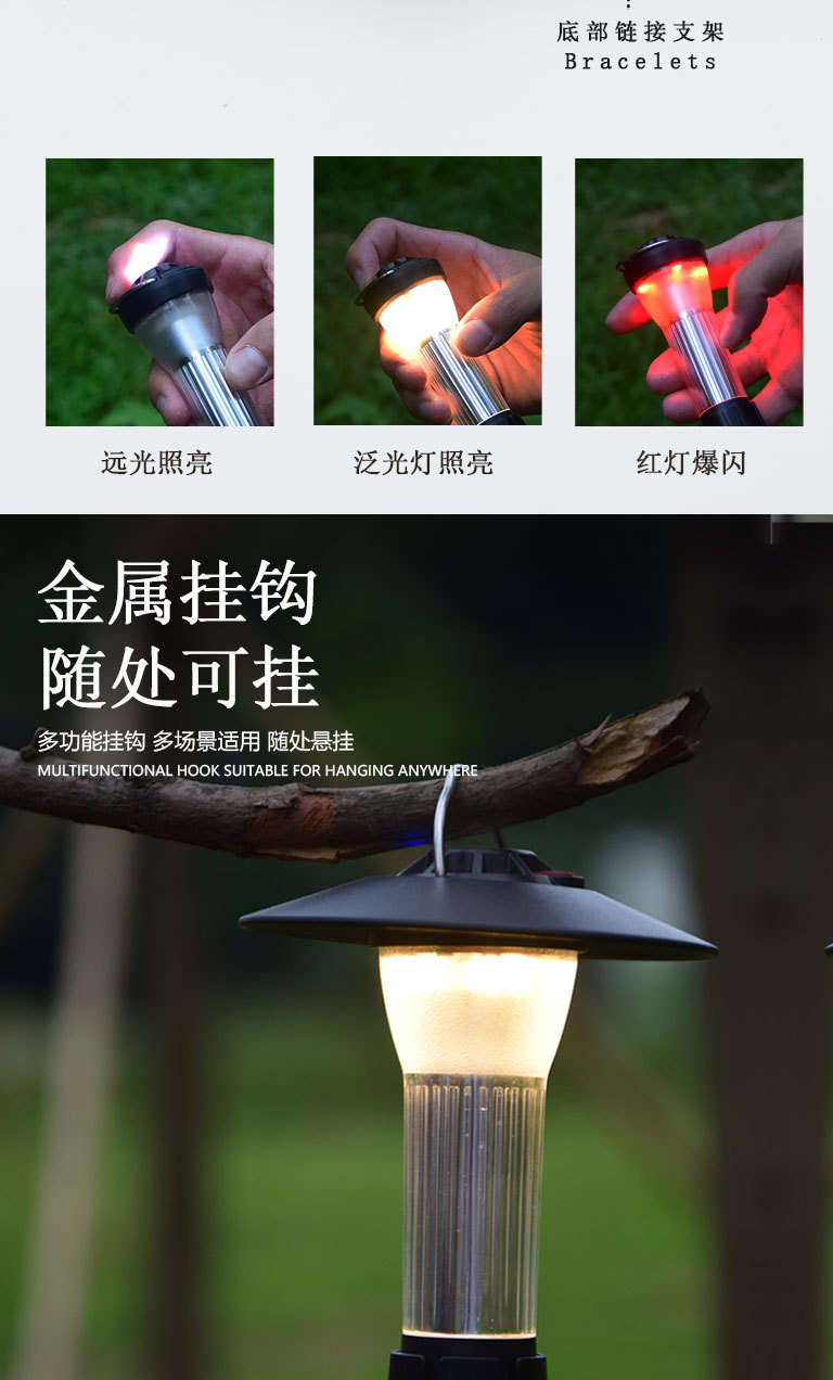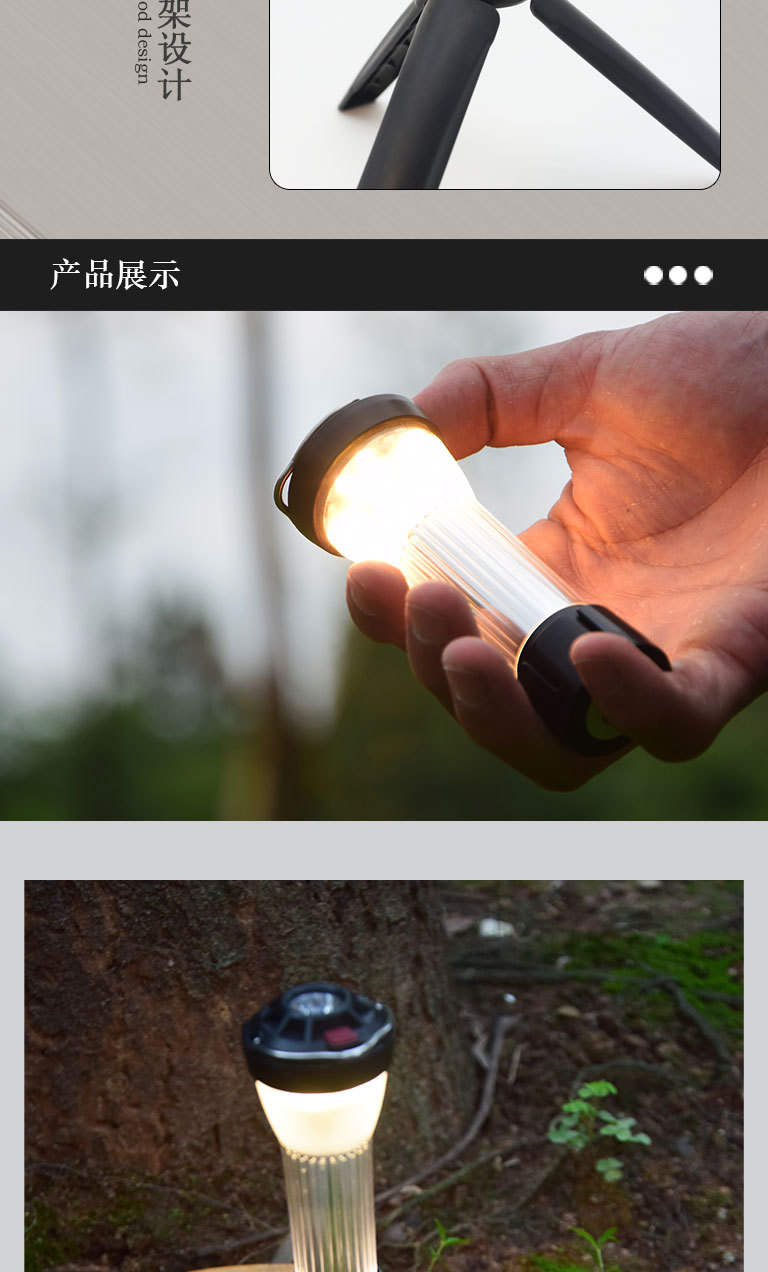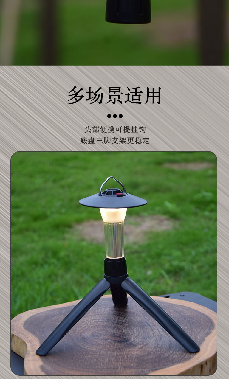 【赠送三脚架 秒变台灯!】露营必备,炫酷多功能挂式帐篷灯,随处可挂,双光源照明,防水设计,夜晚随处照亮,点亮你的旅途。