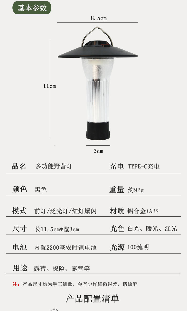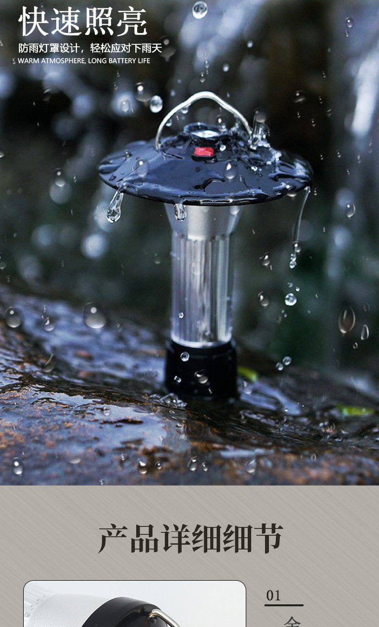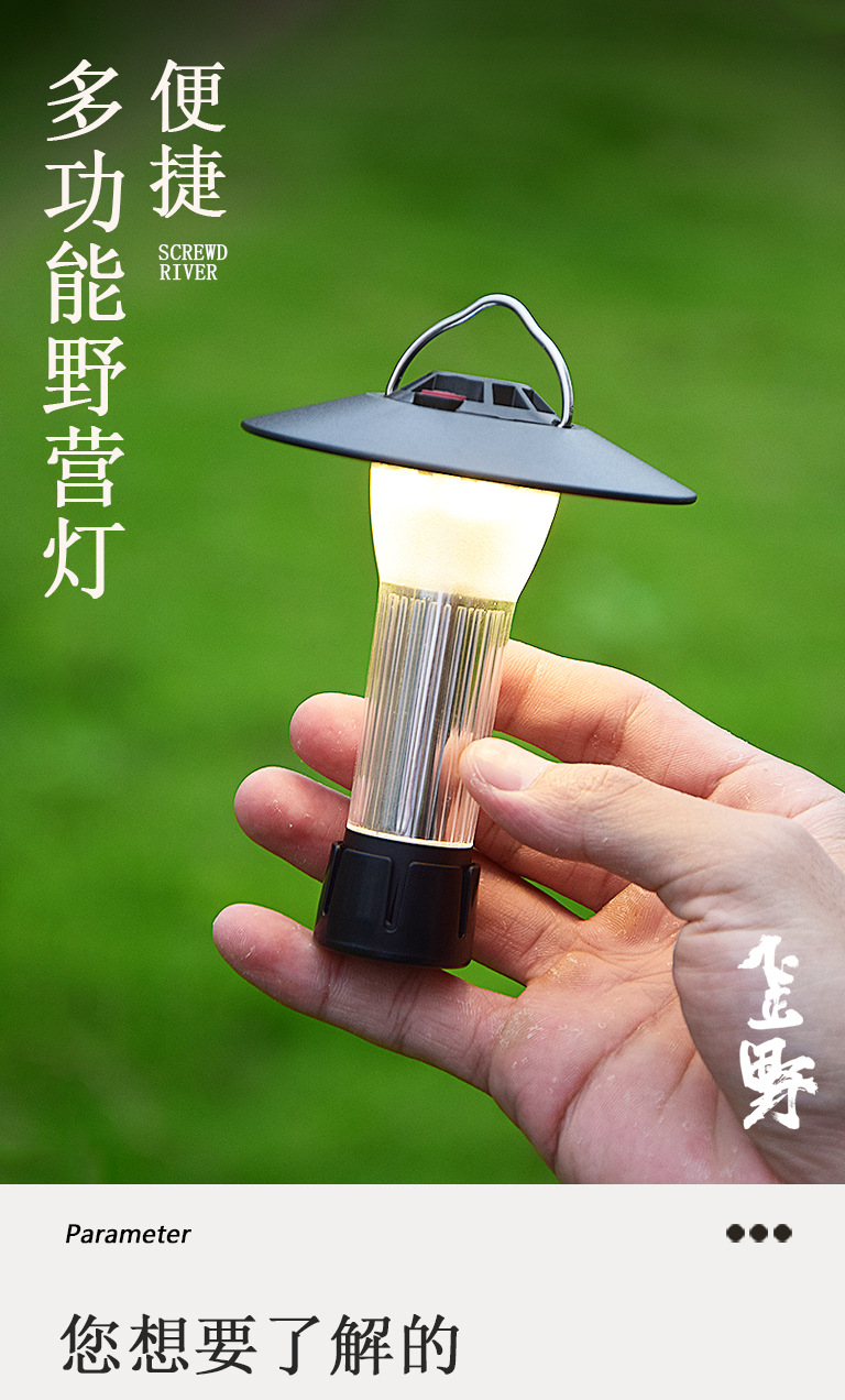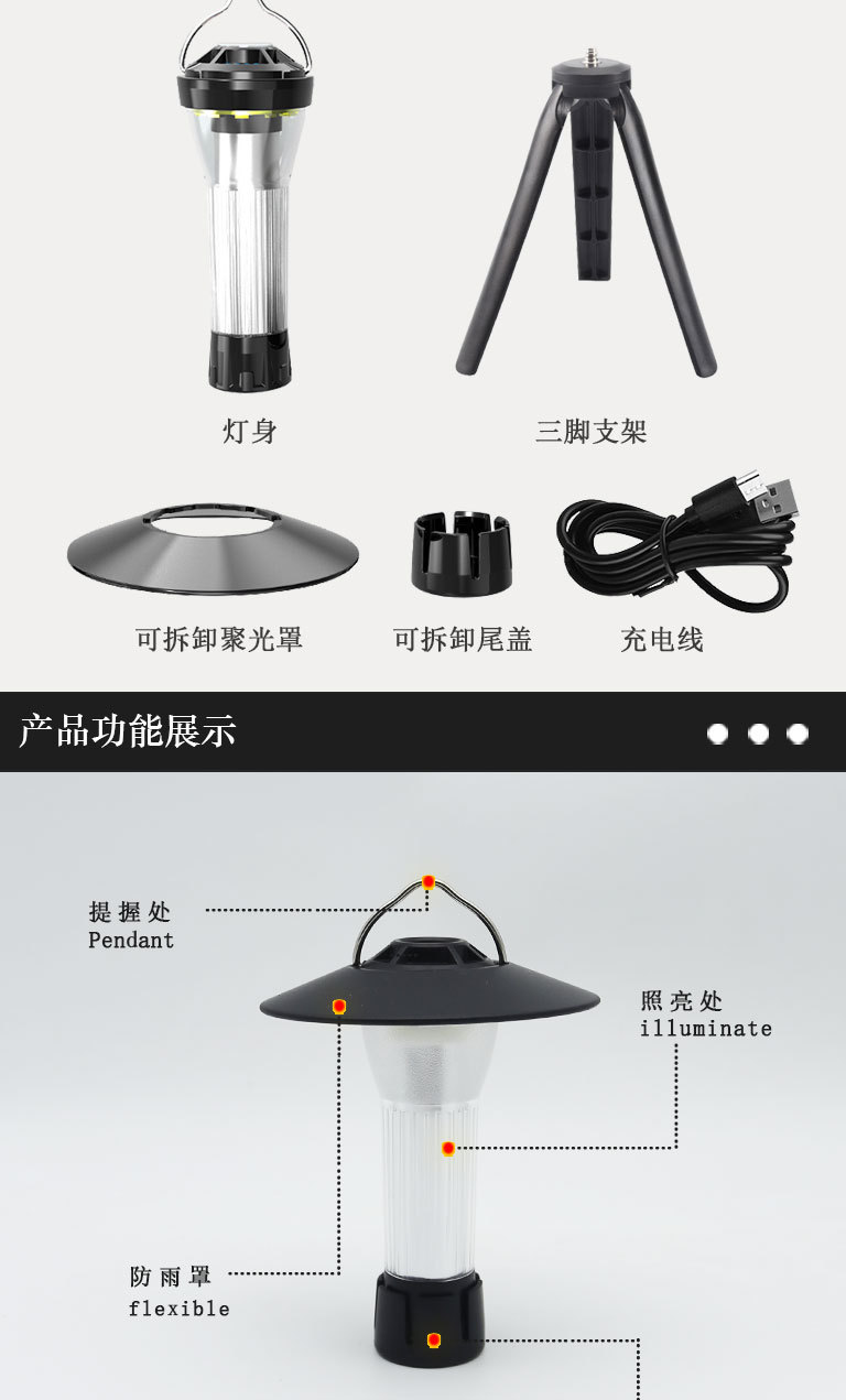 【赠送三脚架 秒变台灯!】露营必备,炫酷多功能挂式帐篷灯,随处可挂,双光源照明,防水设计,夜晚随处照亮,点亮你的旅途。