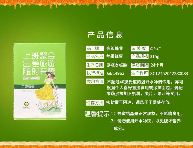 夜郎蜂业 315g苹果蜂蜜 独立包装