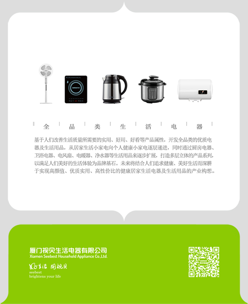 厦门视贝科技有限公司是集产品自主设计,研发,生产,销售于一体的高科技企业。拥有80000平方米的制造厂房,核心员工2000多人。产品线涵盖照明、电工,卫浴,线路,集成风暖等领域。