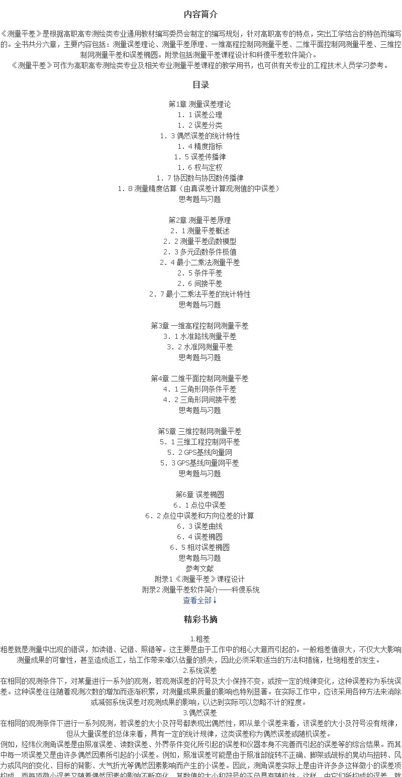 《全国高职高专测绘类专业通用教材:测量平差》