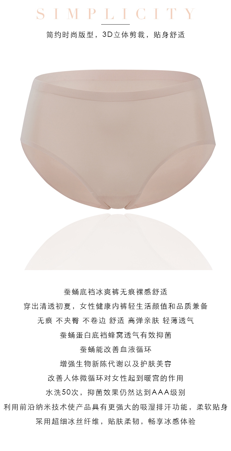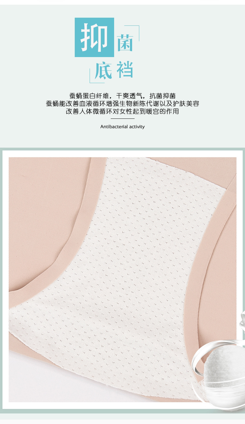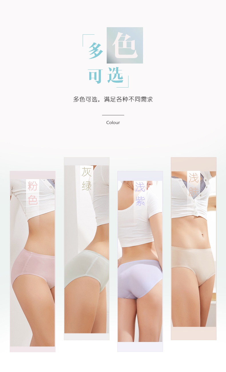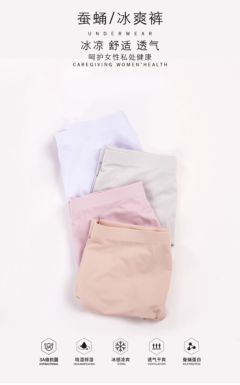 【日本检品】女士蚕蛹蛋白底裆冰爽内裤(4条装) (肤+绿+粉+紫) 均码