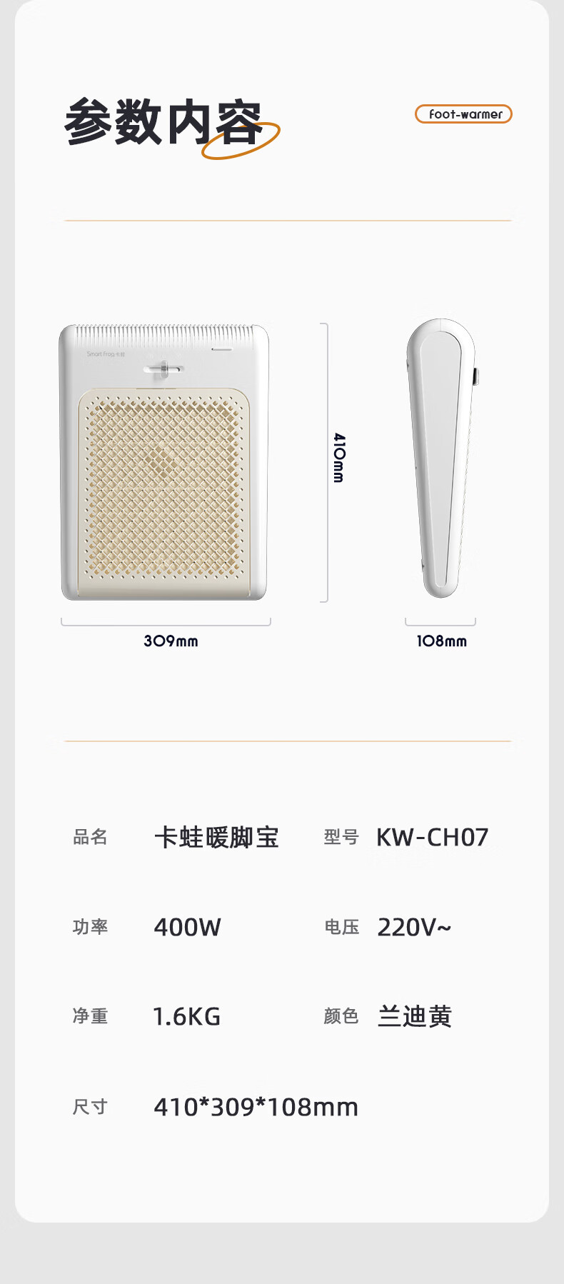【多样屋专柜】卡蛙家用暖脚器暖风机办公室桌下暖腿保暖