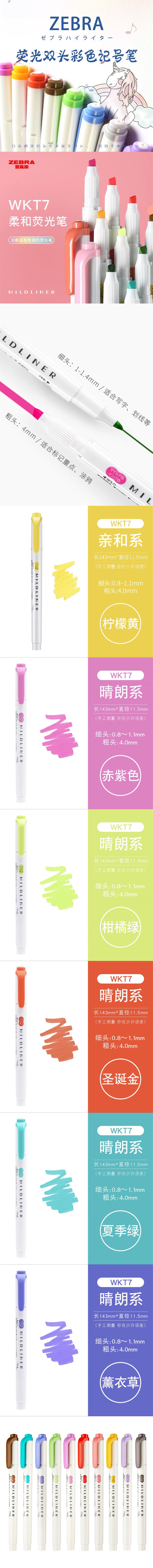 ZEBRA日本斑马双头荧光笔 WKT7荧光标记笔彩色记号笔 1支 手帐做笔记划重点文具