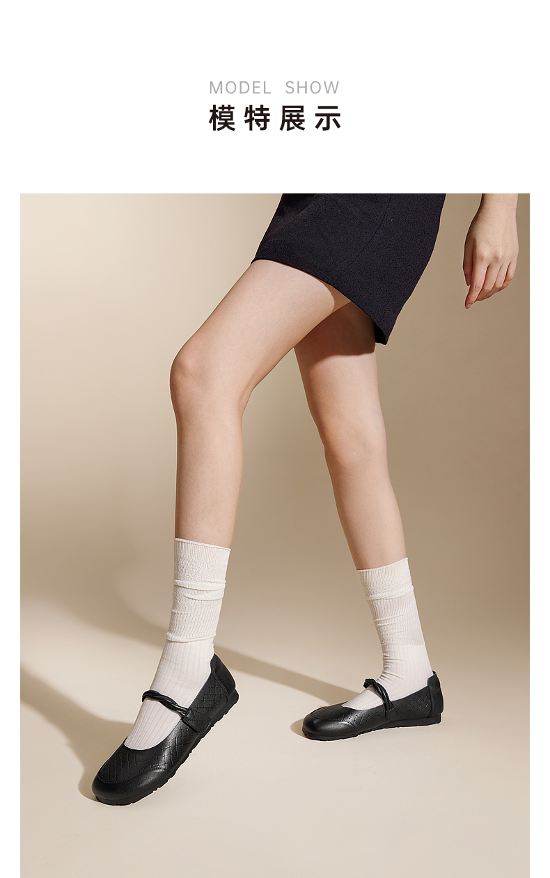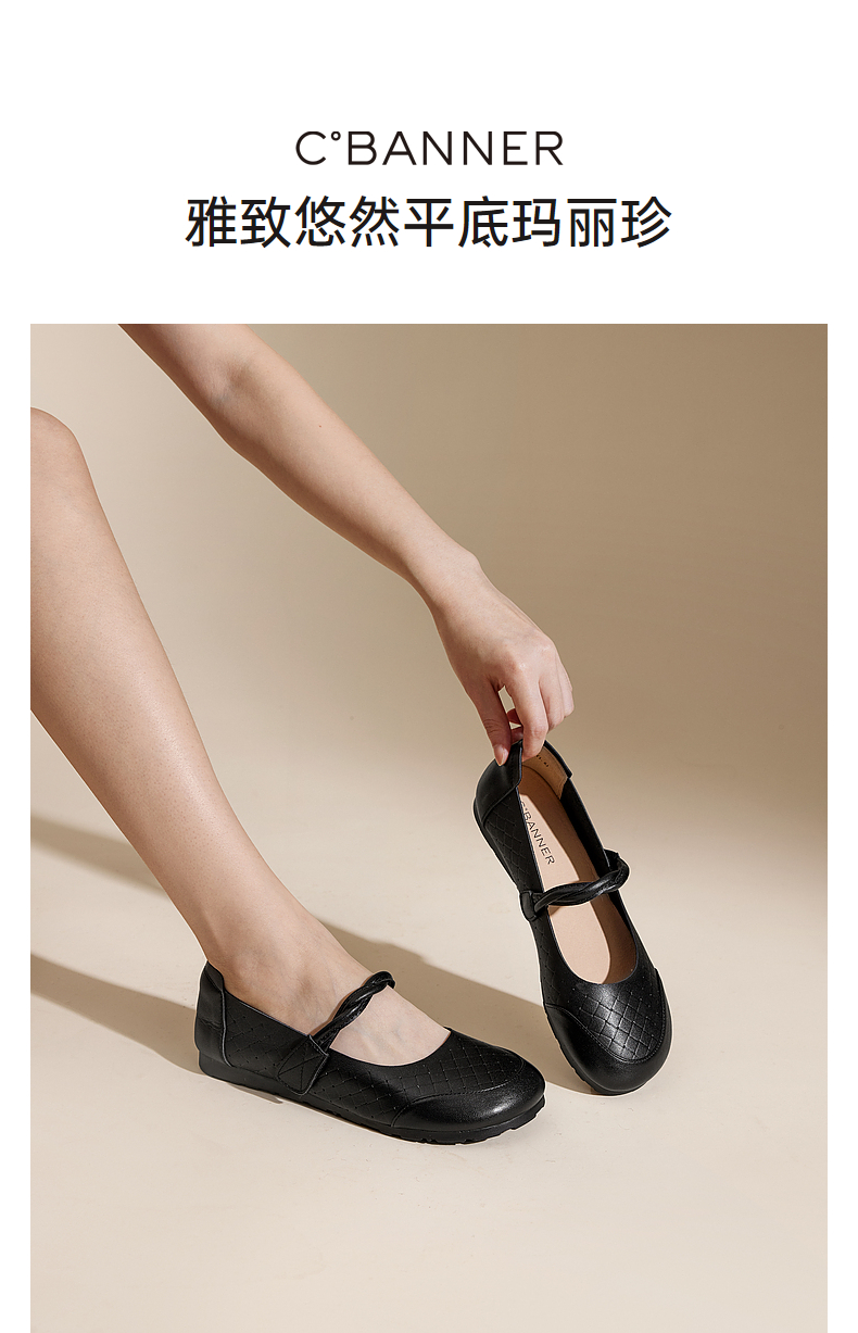 千百度羊皮浅口玛丽珍鞋女秋季休闲单鞋小香风平底晚晚鞋A24428802