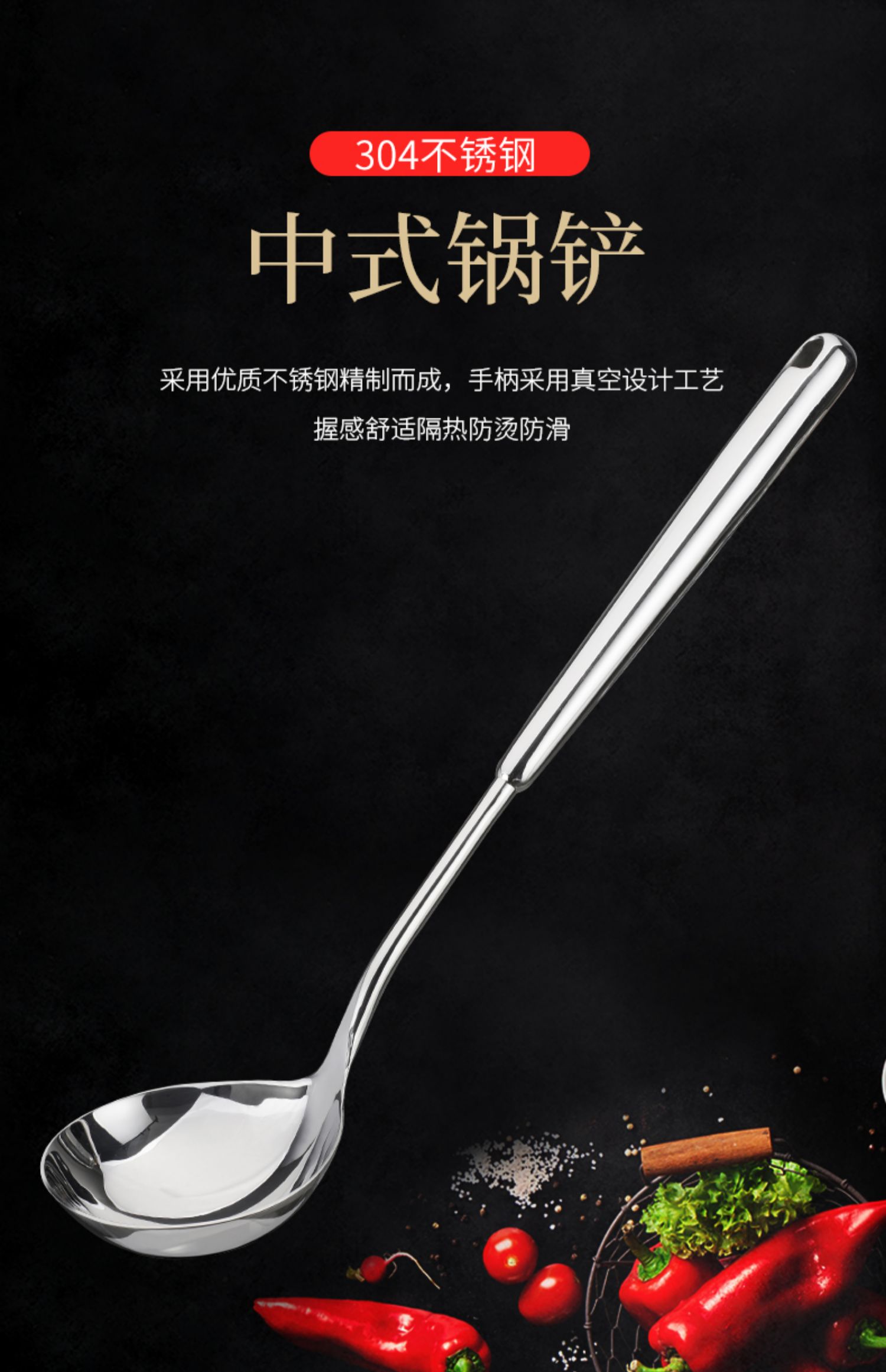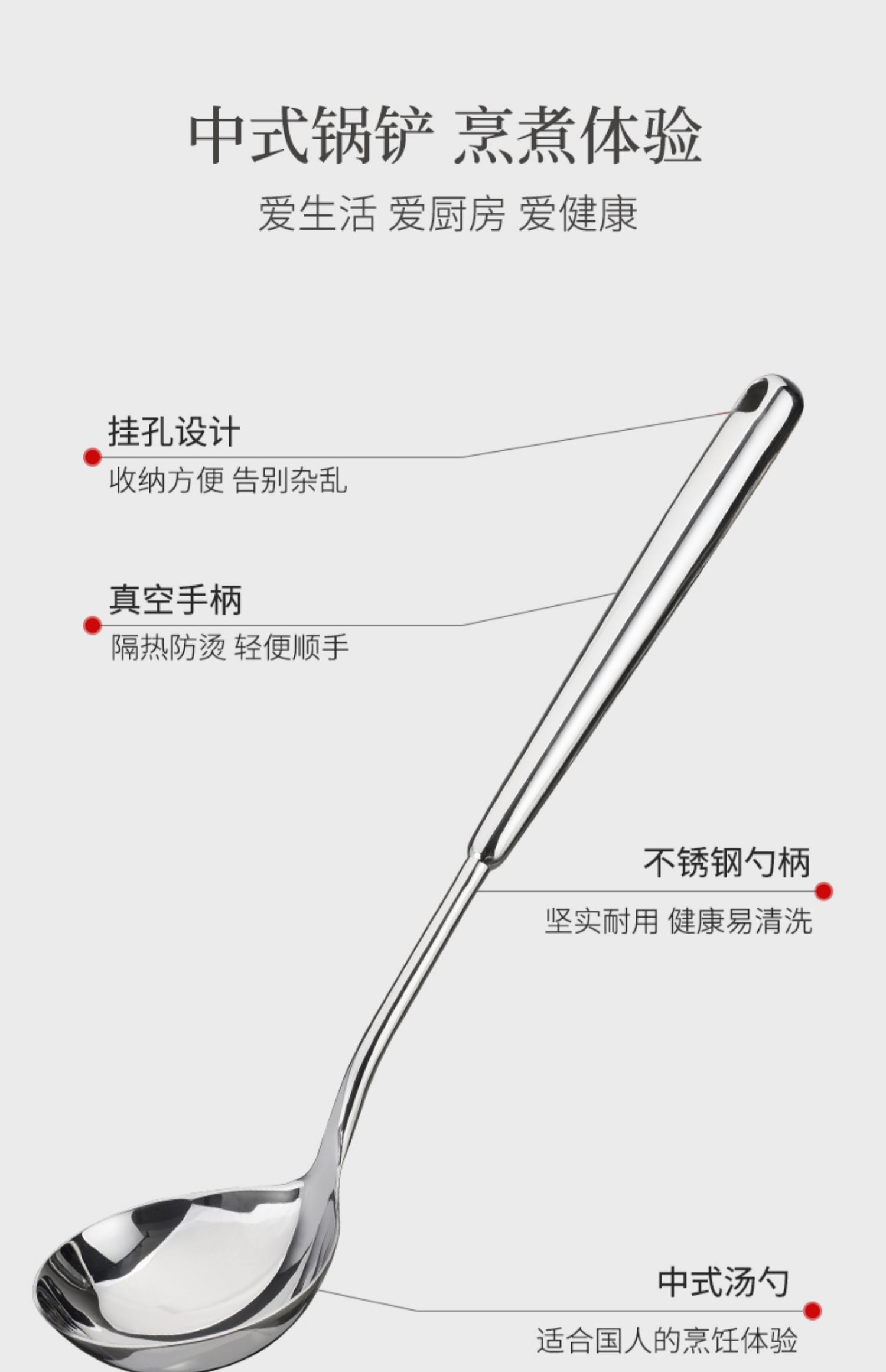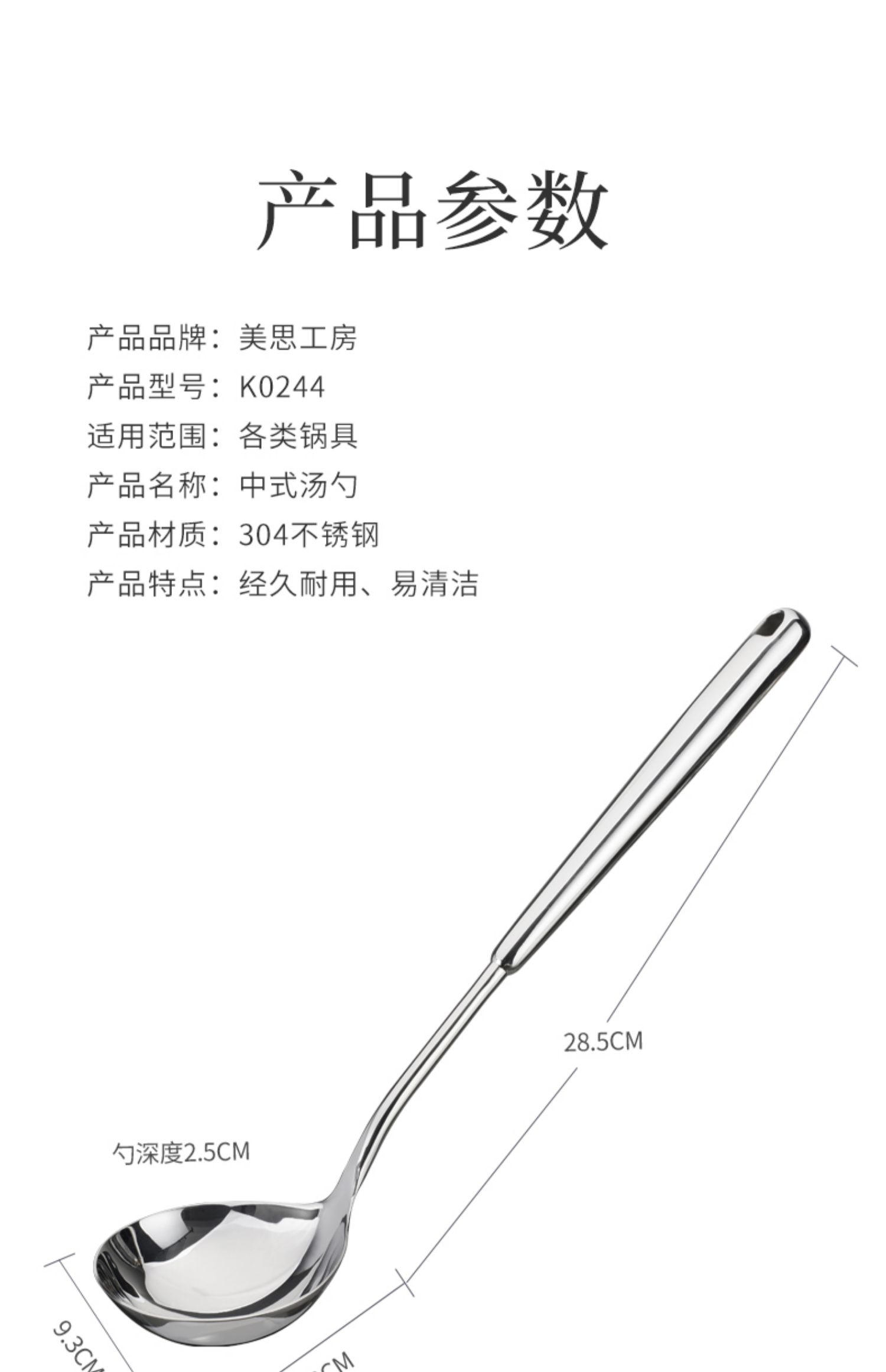 美思工坊中式汤勺304不锈钢汤勺加厚