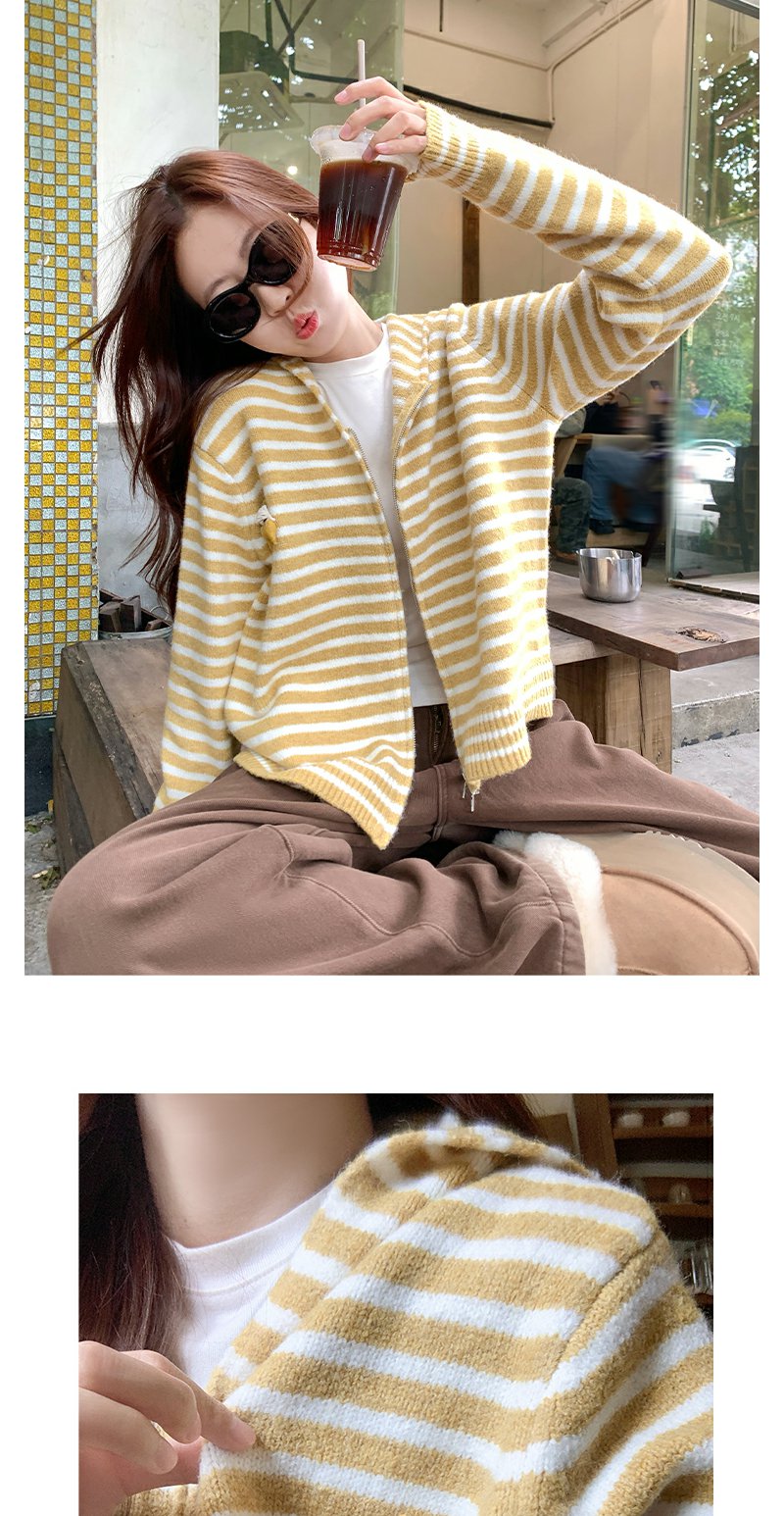 <曾小咸推荐>现货秒杀 !微信超特价! 慵懒风条纹拉链毛衣 日常219.99 立减120 秒杀99.99