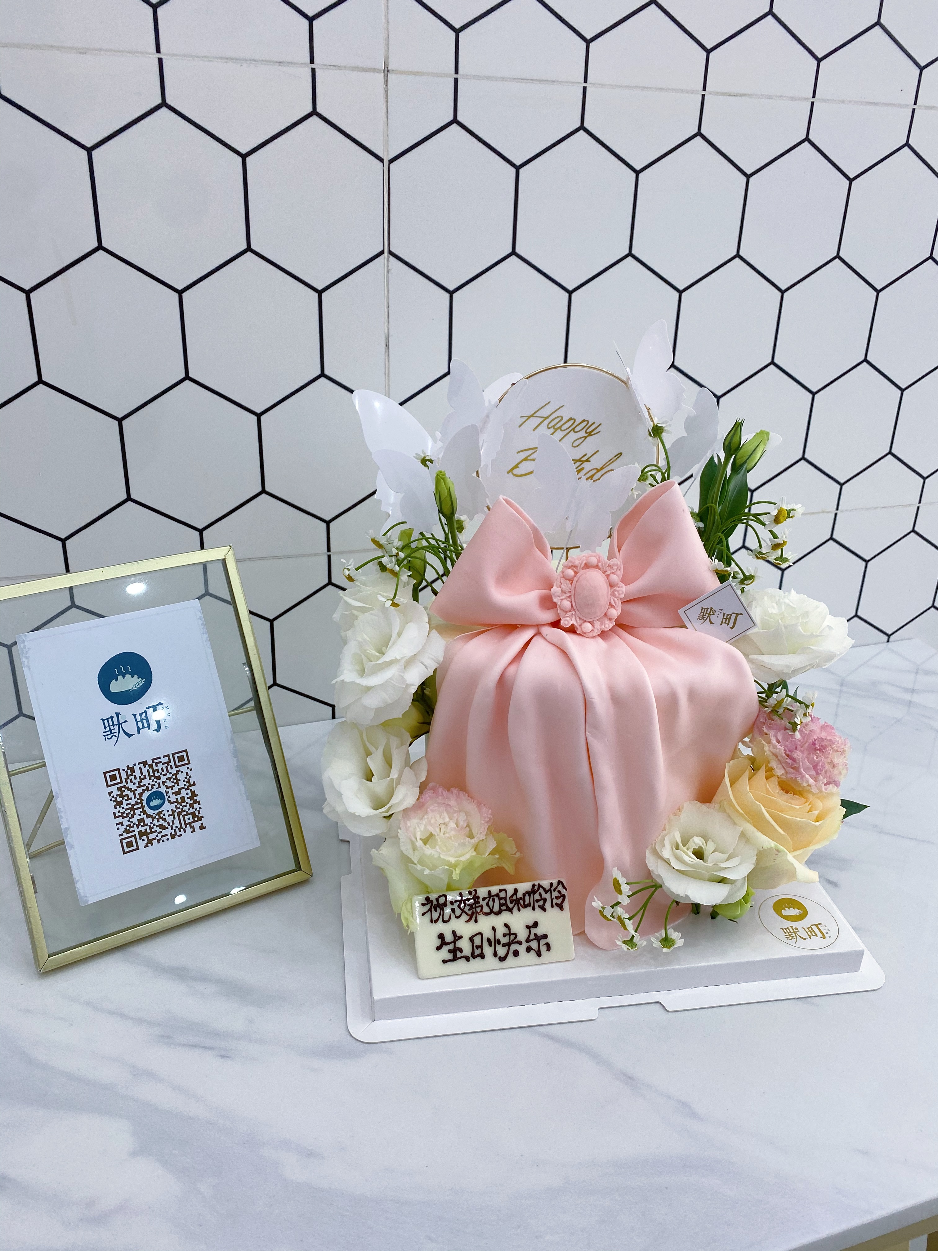 粉系绚丽多彩鲜花&蝴蝶结蛋糕(图片是6寸加高)