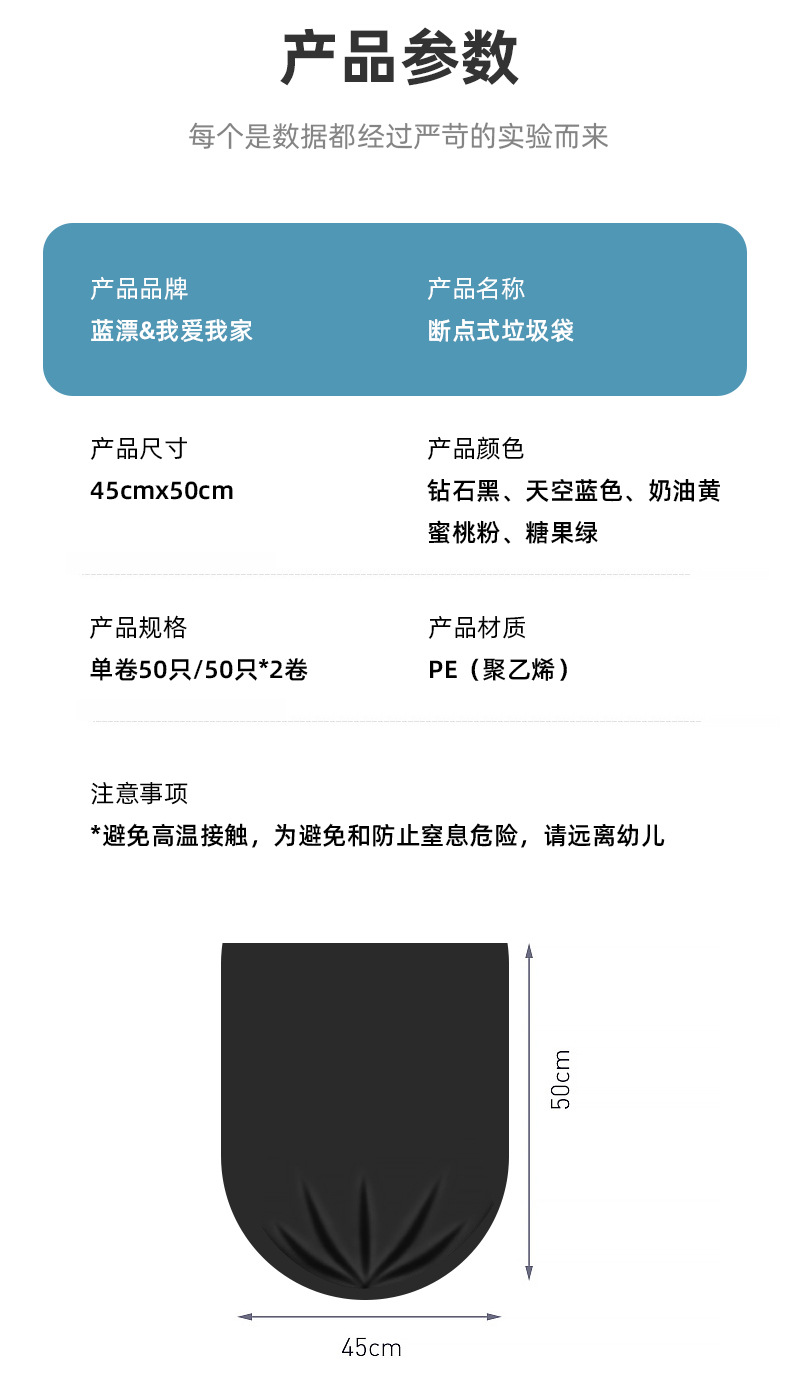 2卷100个装【直面尖硬,不惧硬物!】蓝漂我爱我家,加厚垃圾袋;承重超强,断点式设计,多色可选,不露底不漏水,吸收异味。家庭、餐厅、办公室必备神器!
