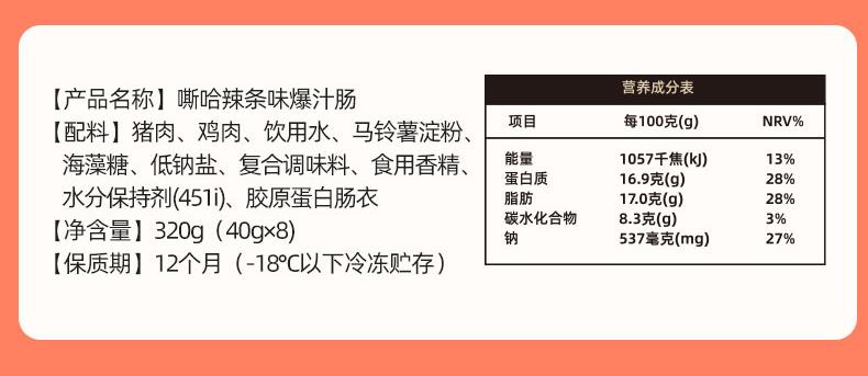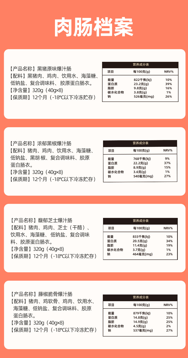 3盒赠:正装黑椒烤肠*6根+多蔬鲜鲜脆皮肠*8根(到手38根)