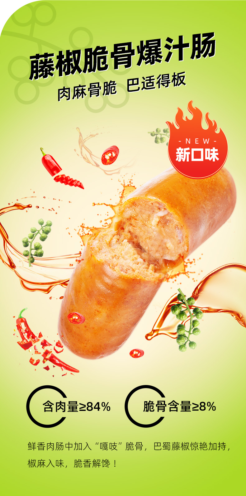 无添加【限时送超值赠品】追肉记 烤肠320g/盒 400g/包 黑猪味/芝士味/黑胡椒味/藤椒脆骨味 多种口味可选,含肉量≥80%