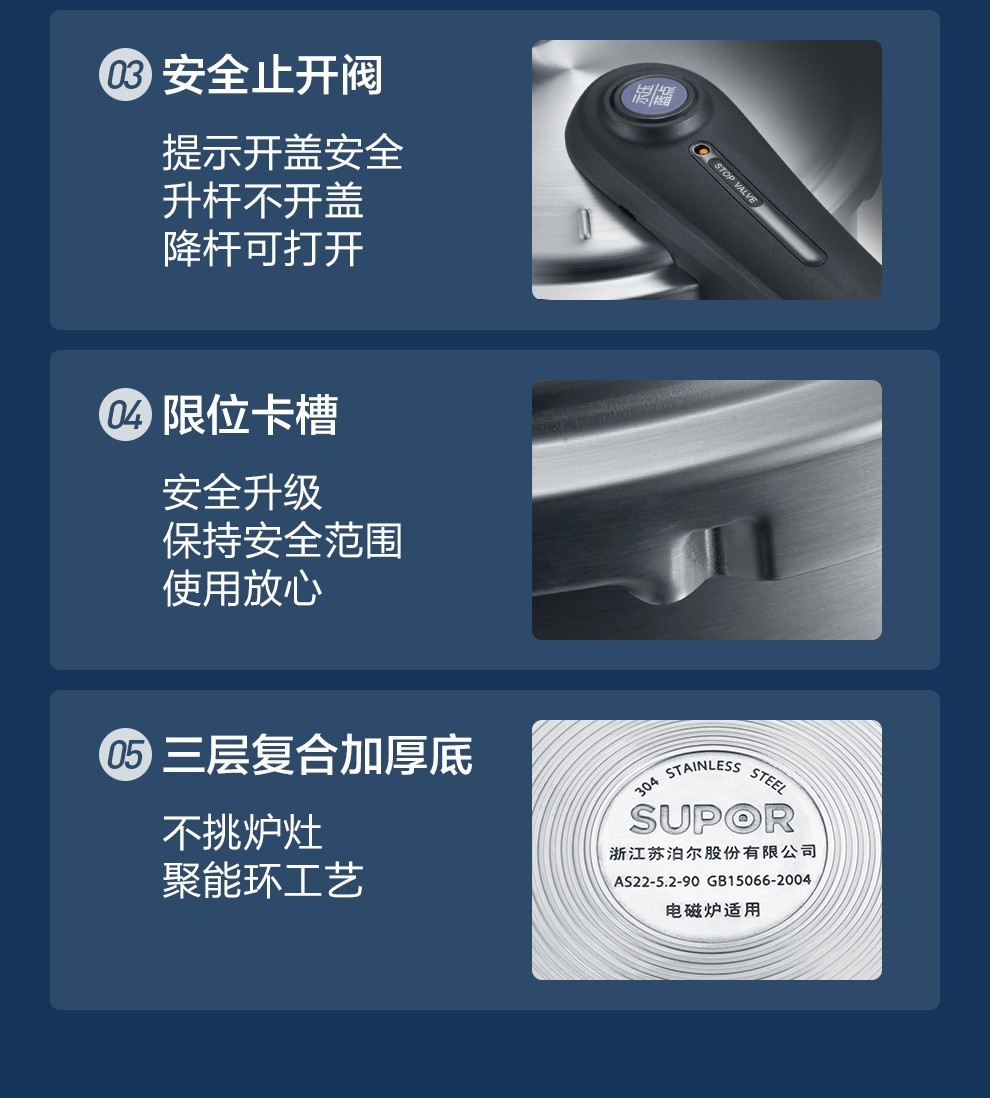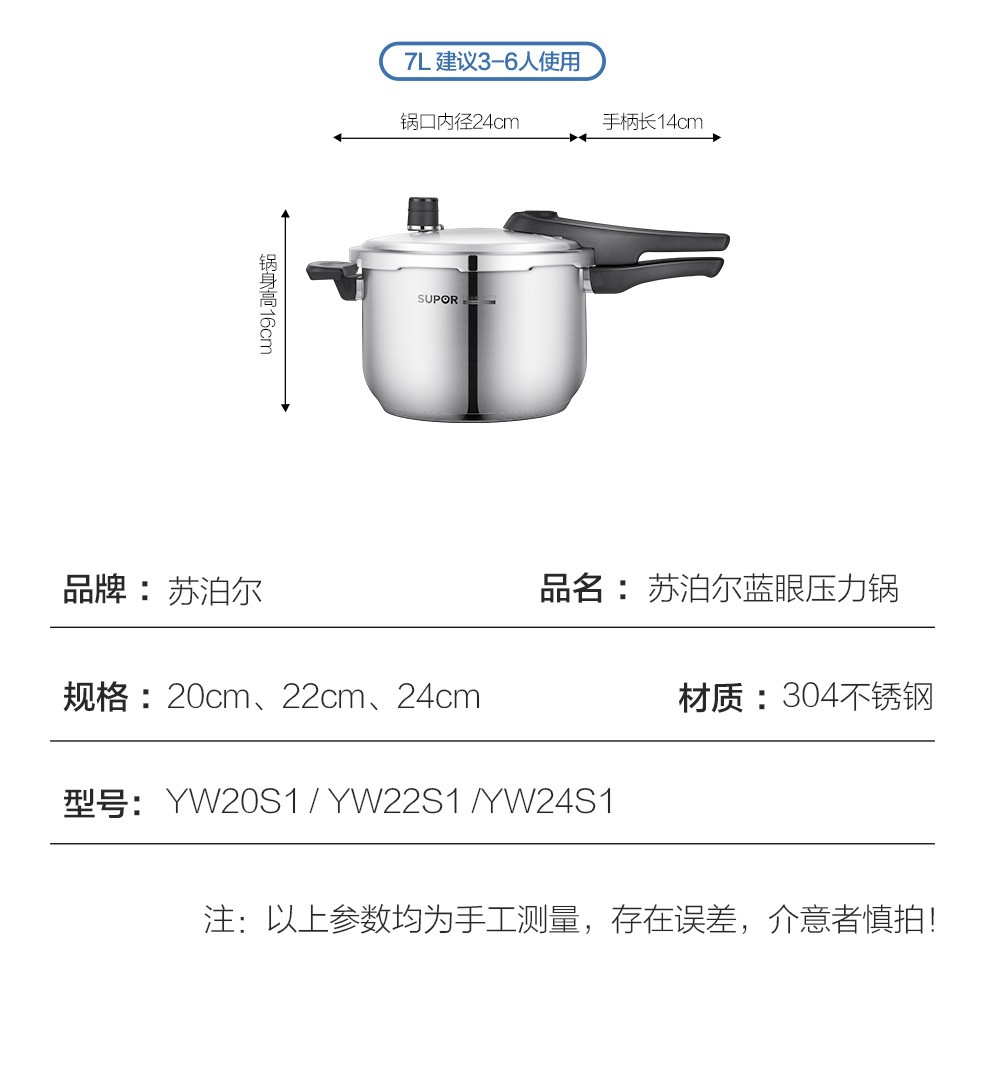 苏泊尔压力锅蓝眼不锈钢压力锅YW24S1
