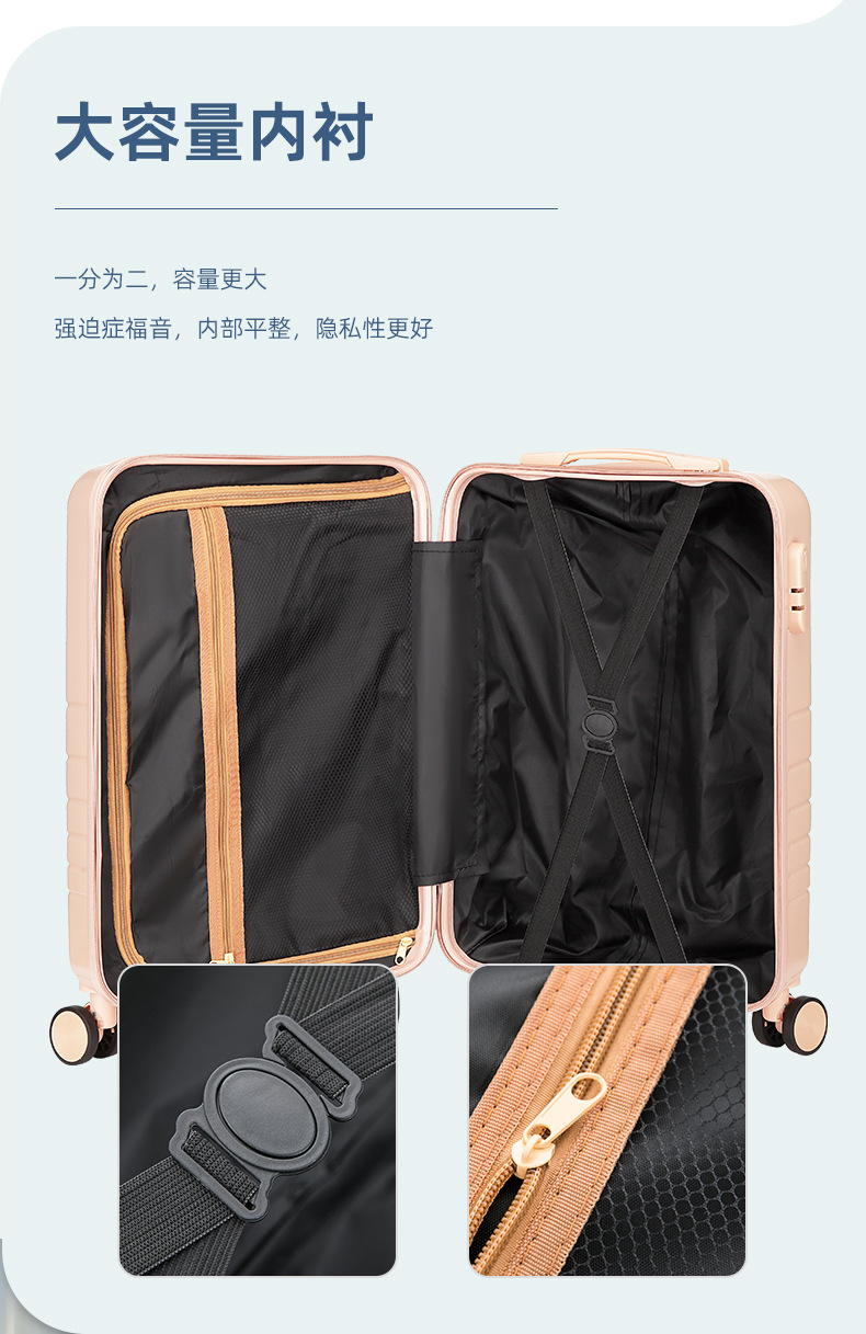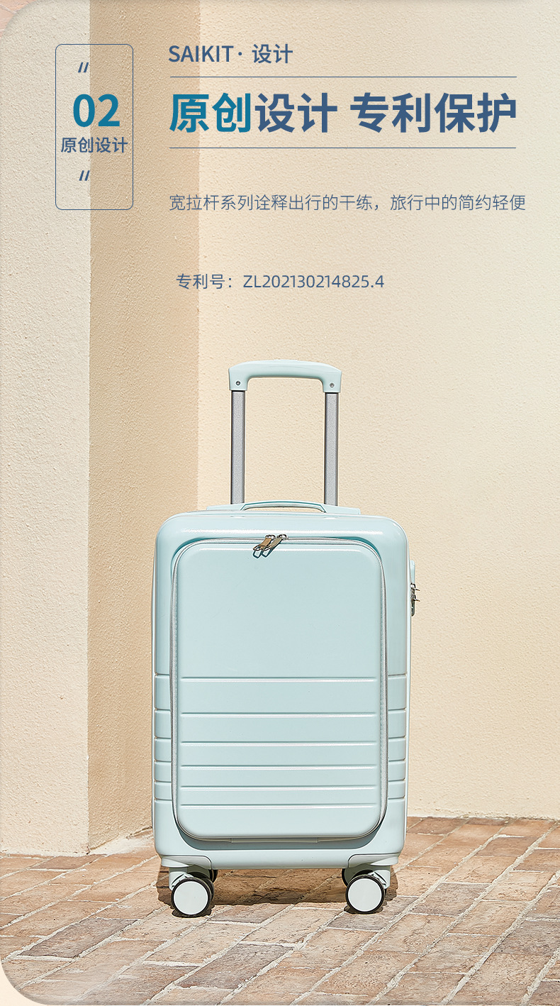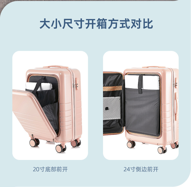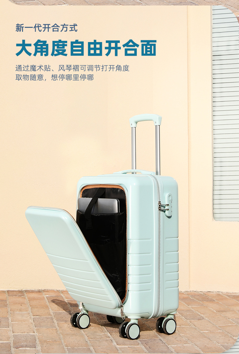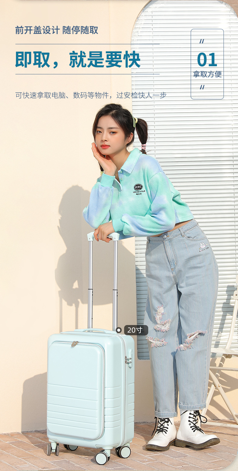 自然醒前置开盖行李箱女小型20寸商务登机拉杆箱男轻便旅行箱YS09 324