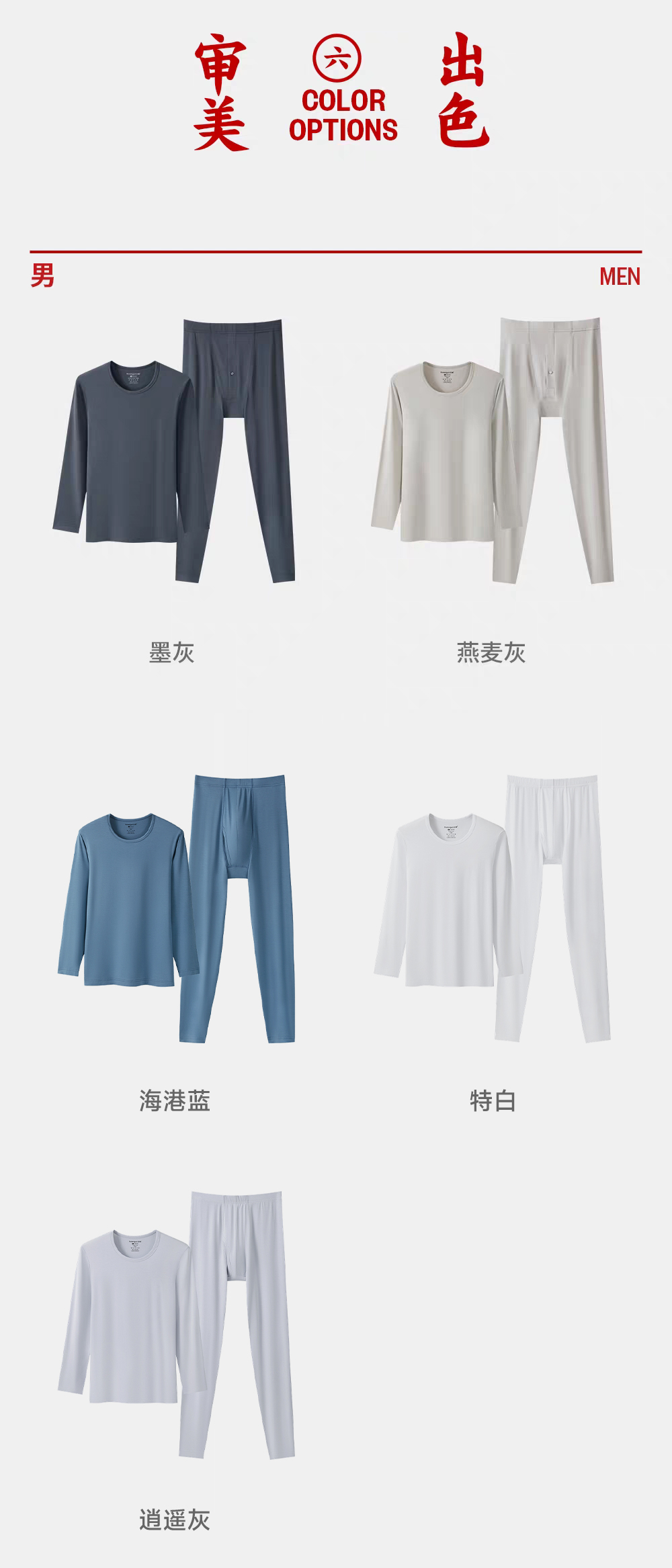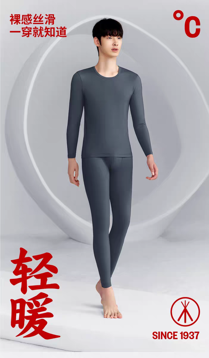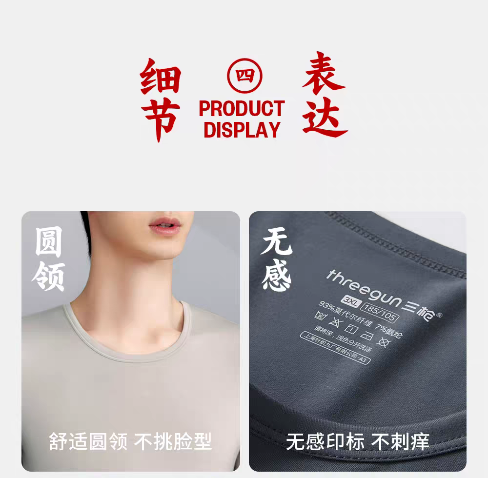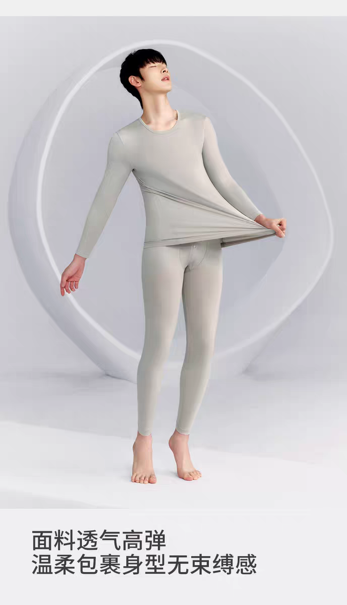 Threegun三枪 【零碳莫代尔】圆领长袖男内衣套-24395D021