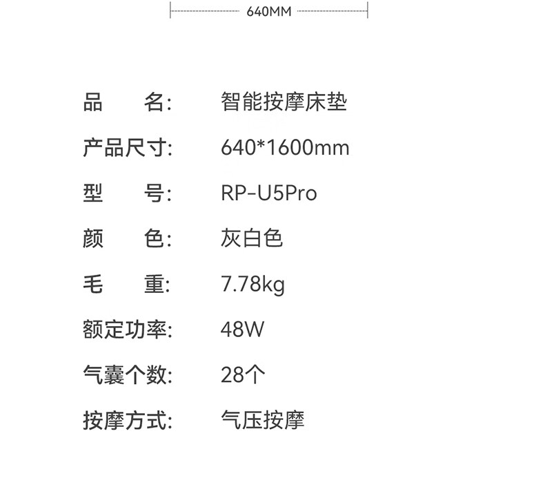 【小家电】Repor锐珀尔智能按摩床垫 U7 HF