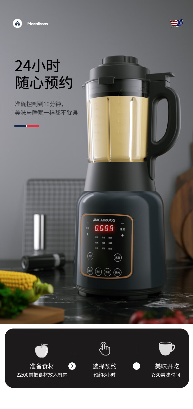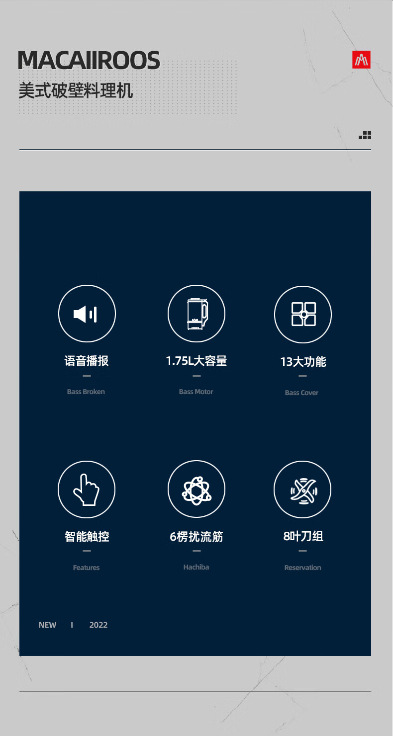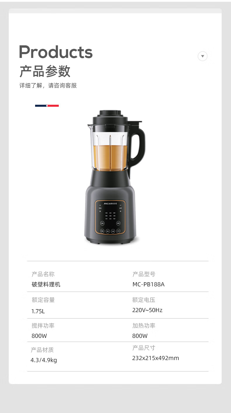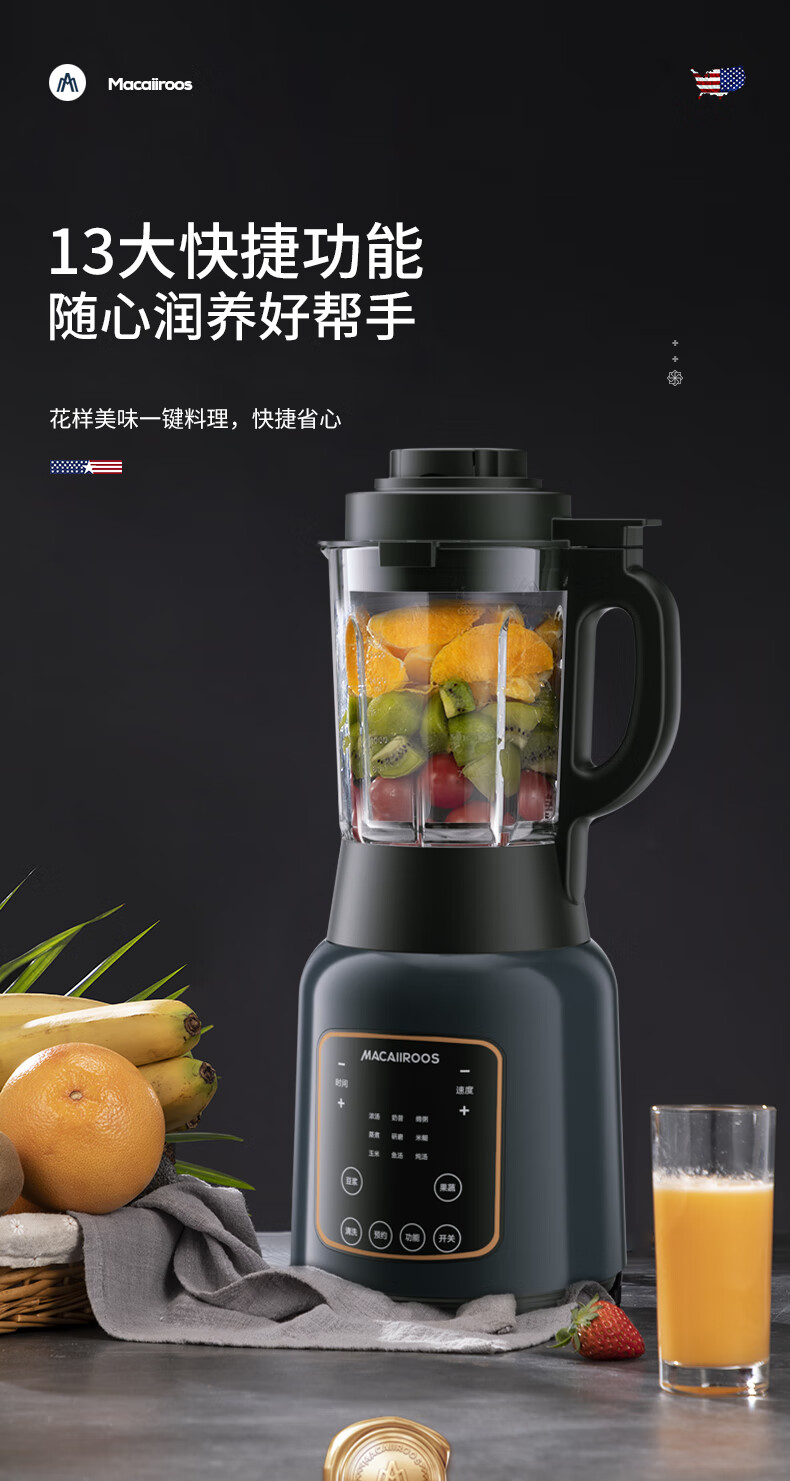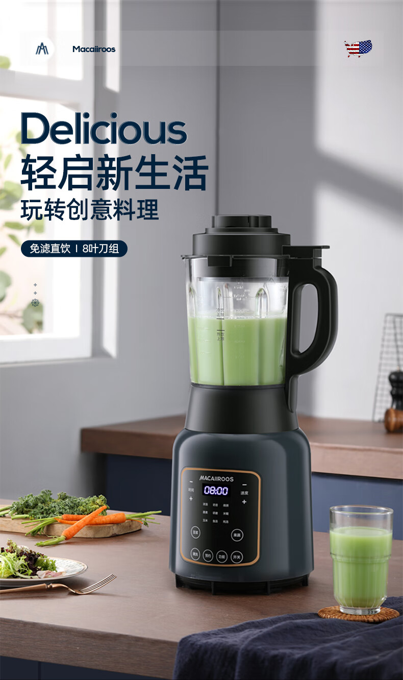 【小家电】迈卡罗MC-PB188A破壁机家用多功能加热破壁豆浆机果汁机HF