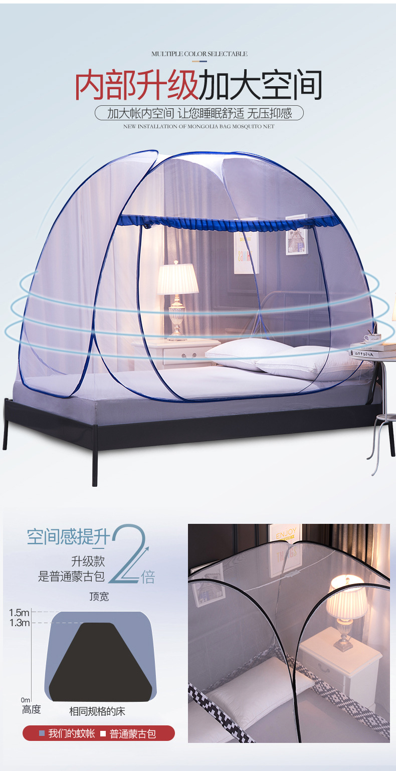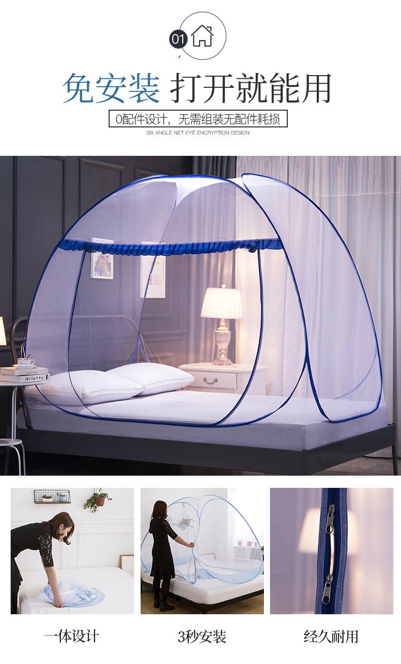 免安装加高蒙古包蚊帐 可折叠一开门全底防蚊方顶拉链蚊帐批发