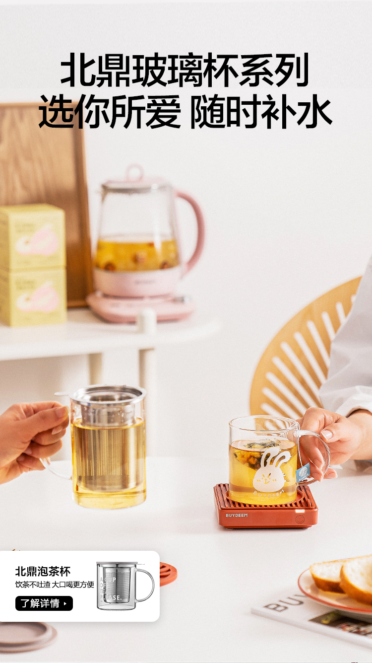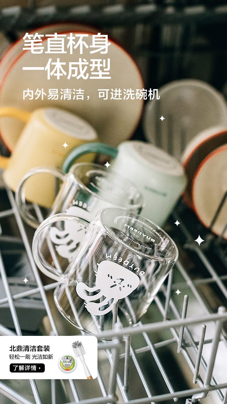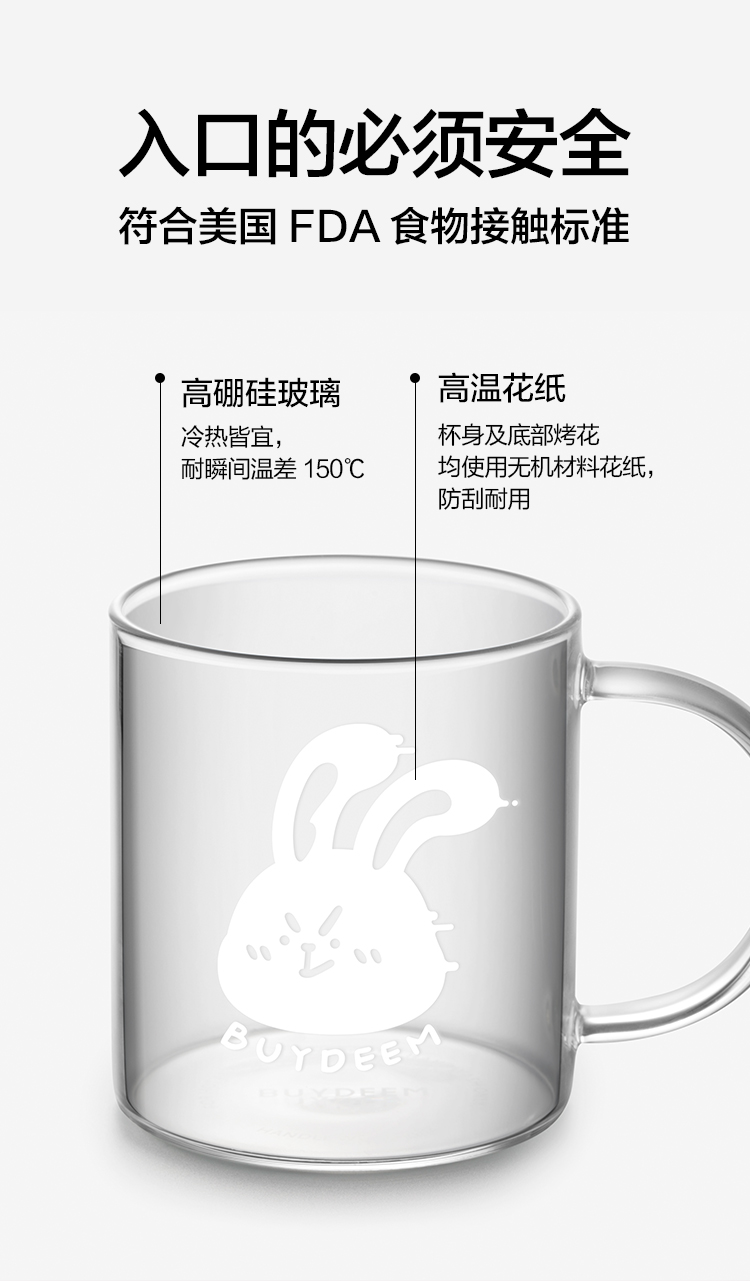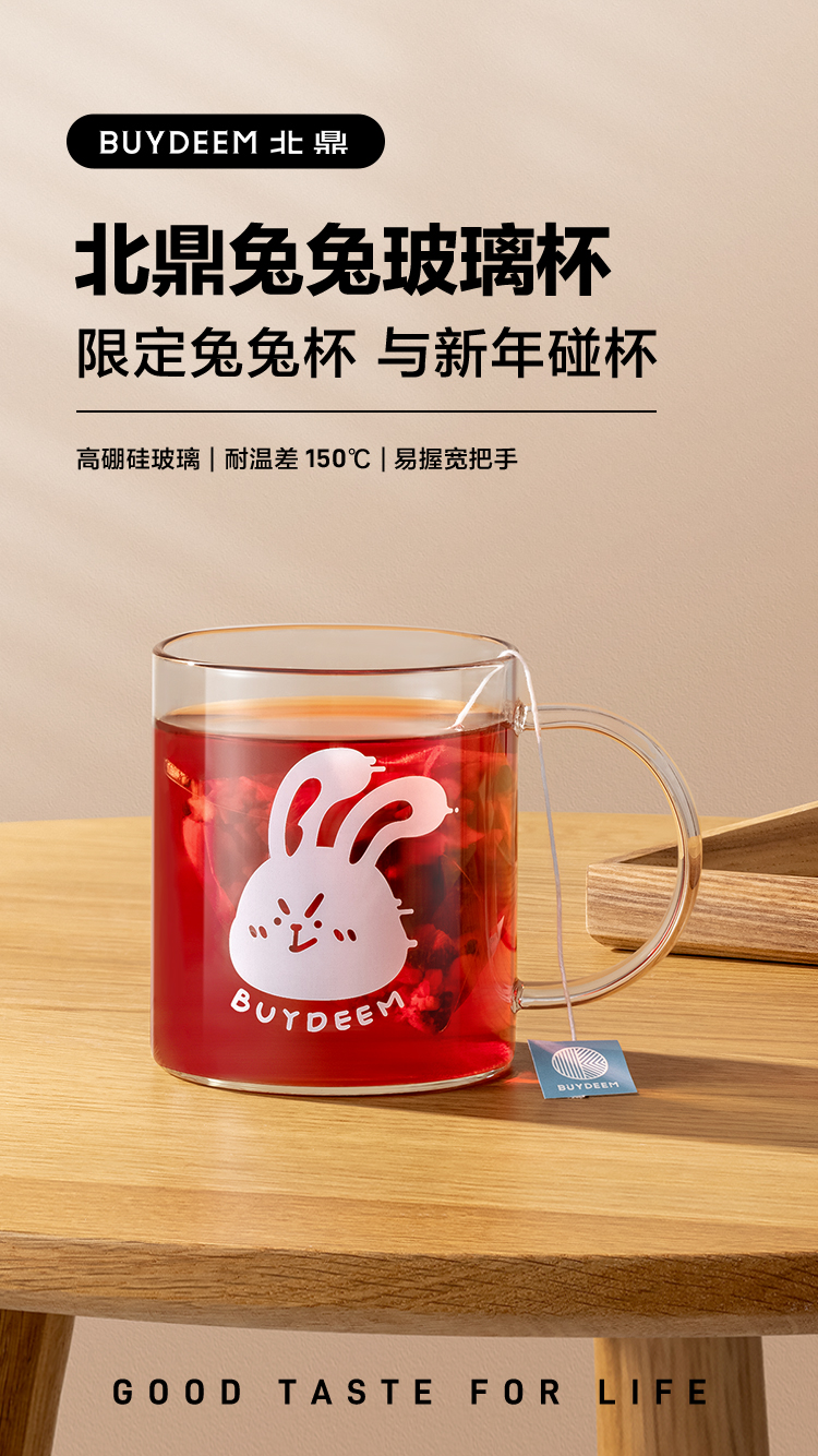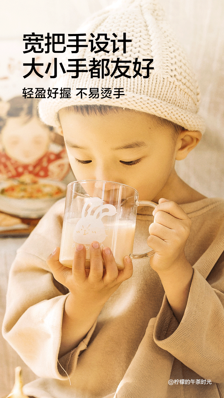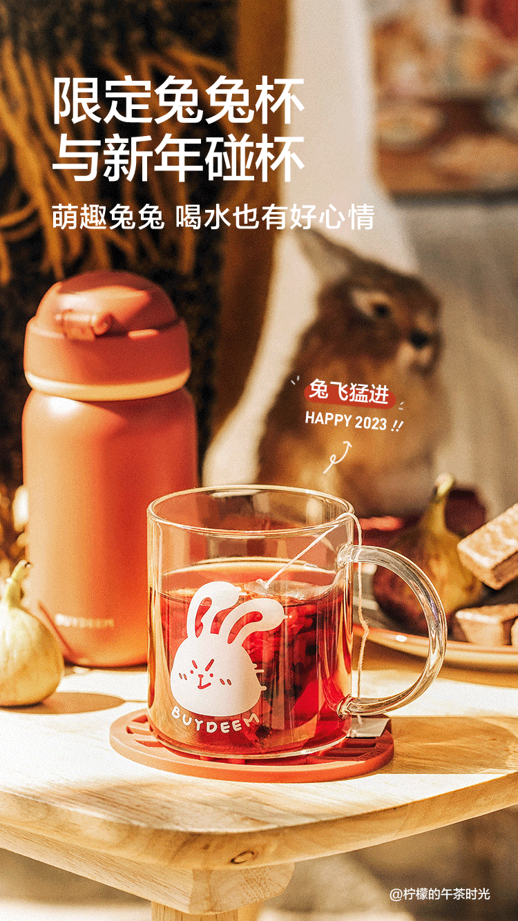【专柜-北鼎】北鼎兔兔玻璃杯家用泡茶马克杯子办公室水杯男女高颜值生肖杯