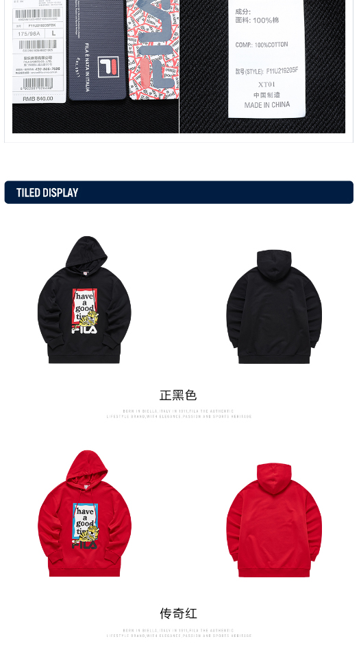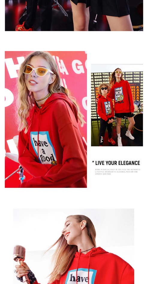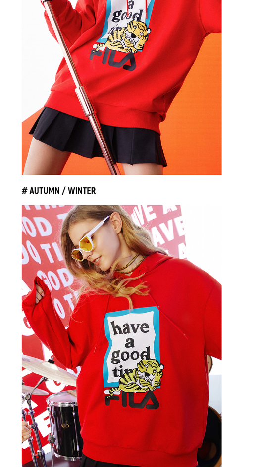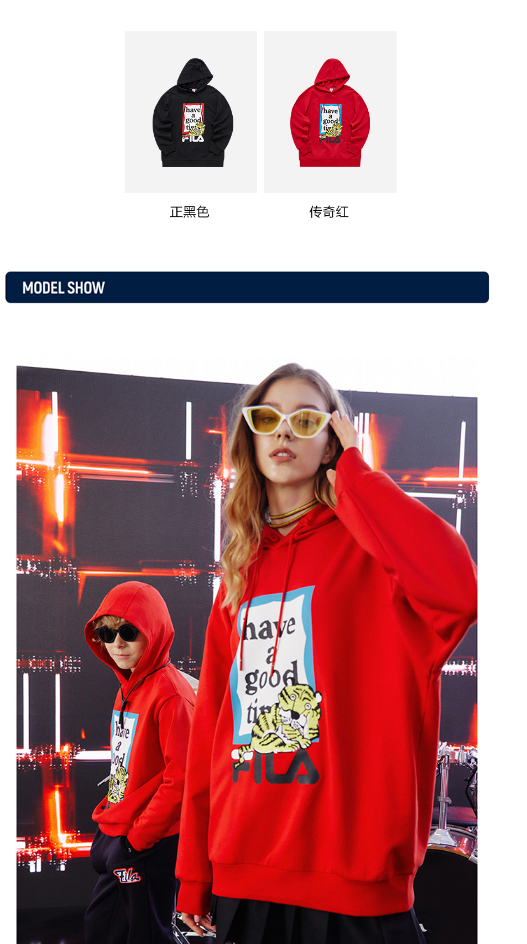FILA虎年红色情侣卫衣2022春季连帽F11U219205F