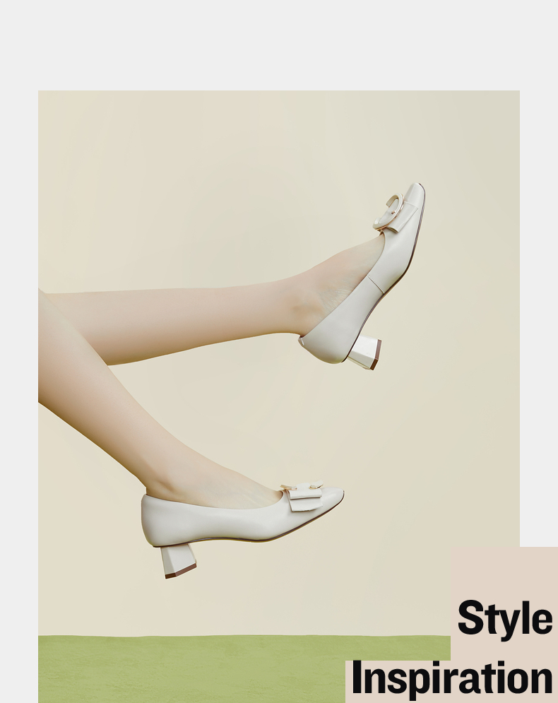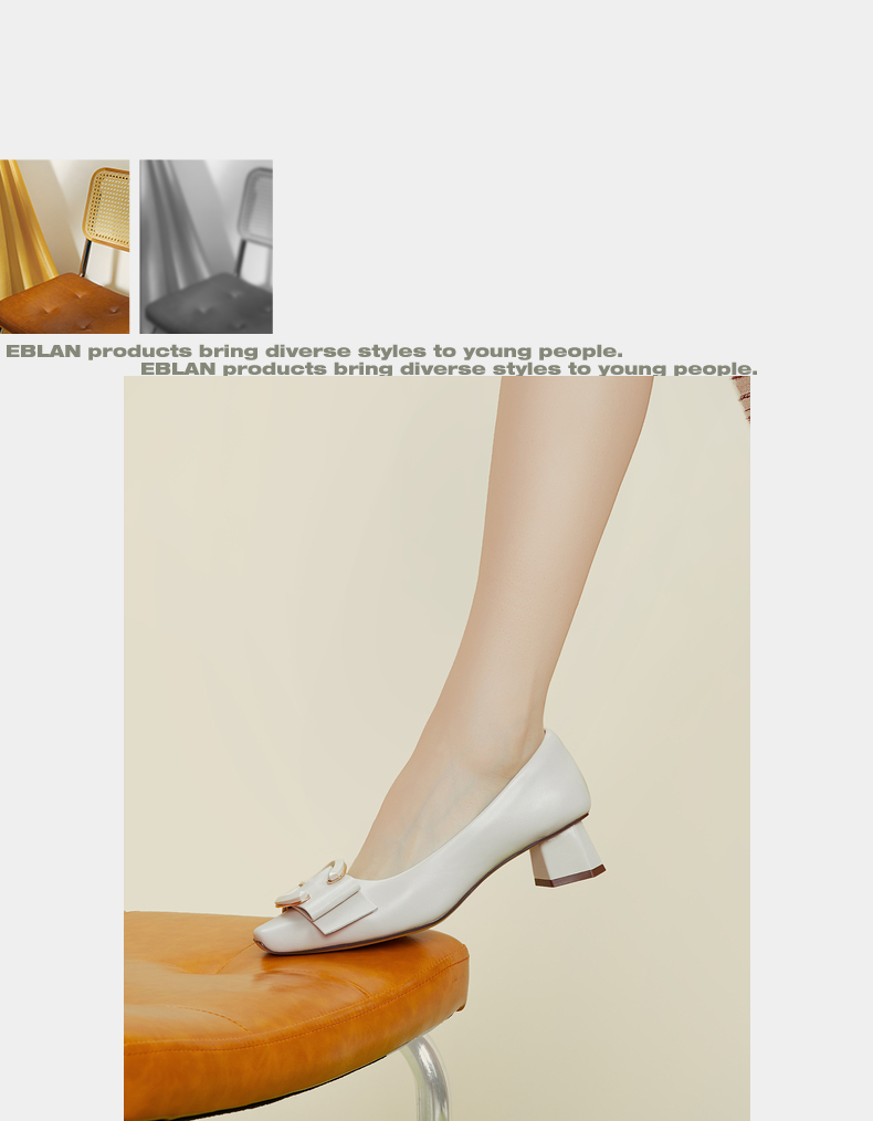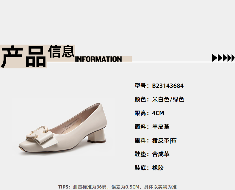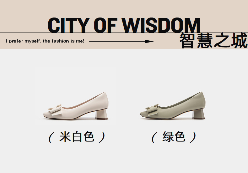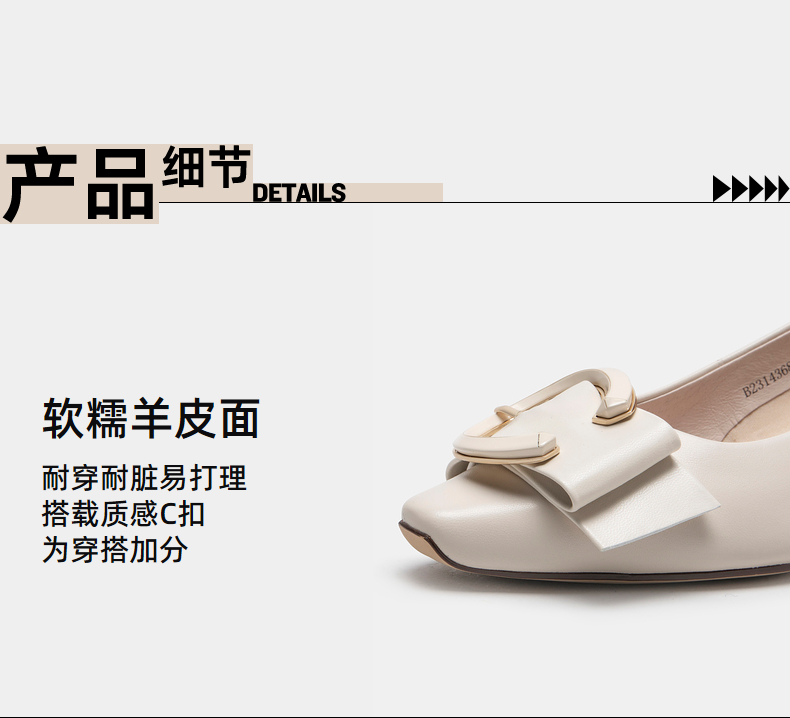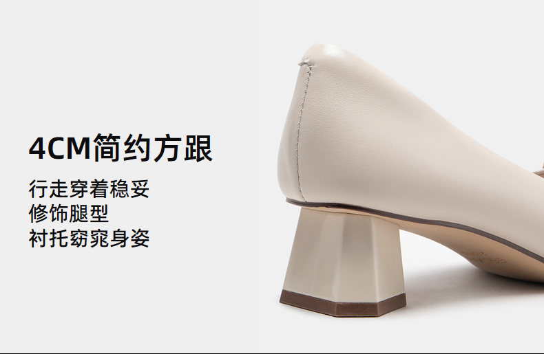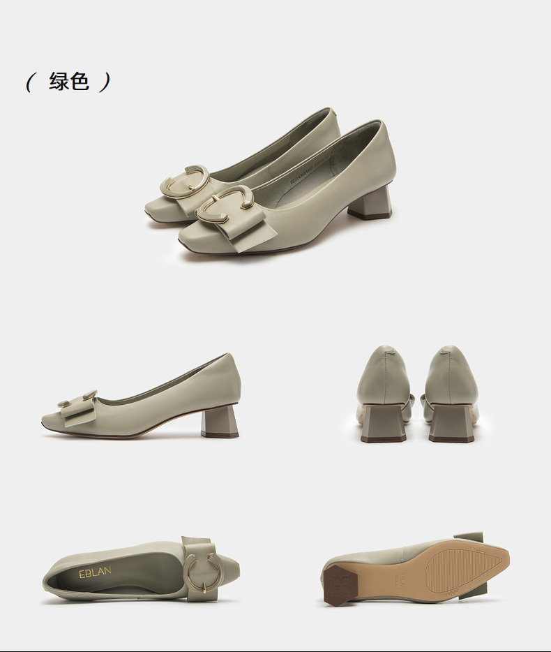 伊伴秋季女鞋羊皮单鞋粗跟单鞋C扣一脚蹬通勤鞋气质单鞋B23143684