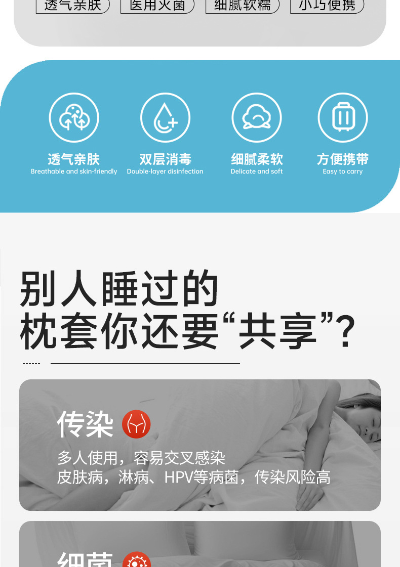 「9.9到手8条!一次性枕套」旅行枕巾加厚隔脏家用枕头套火车卧铺酒店床上便携用品