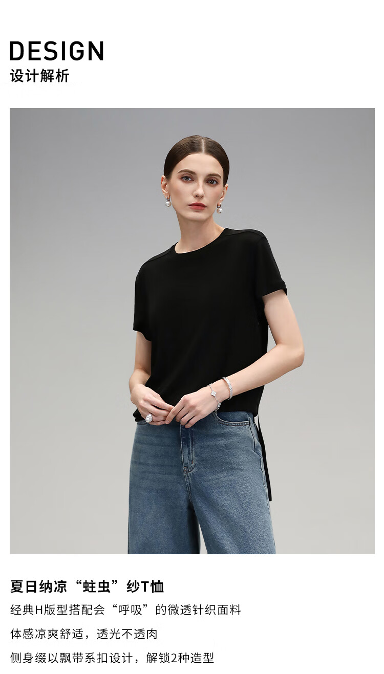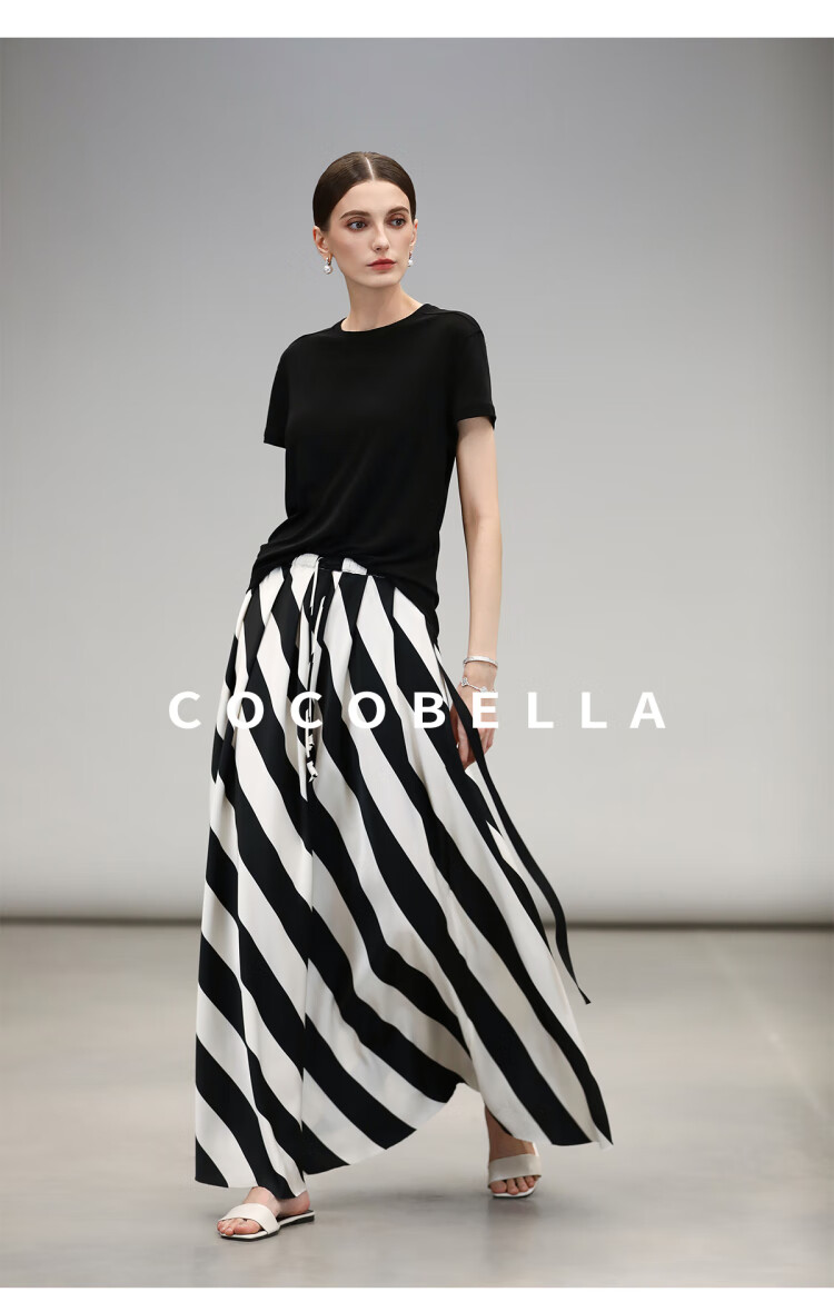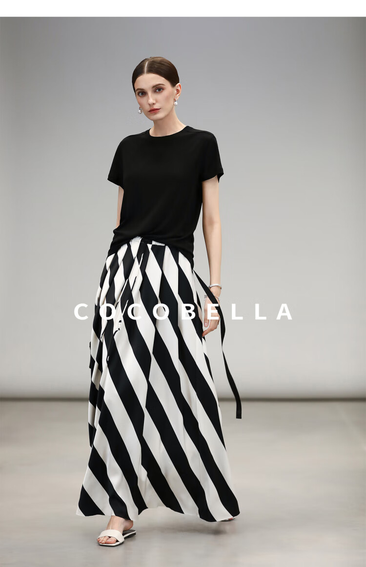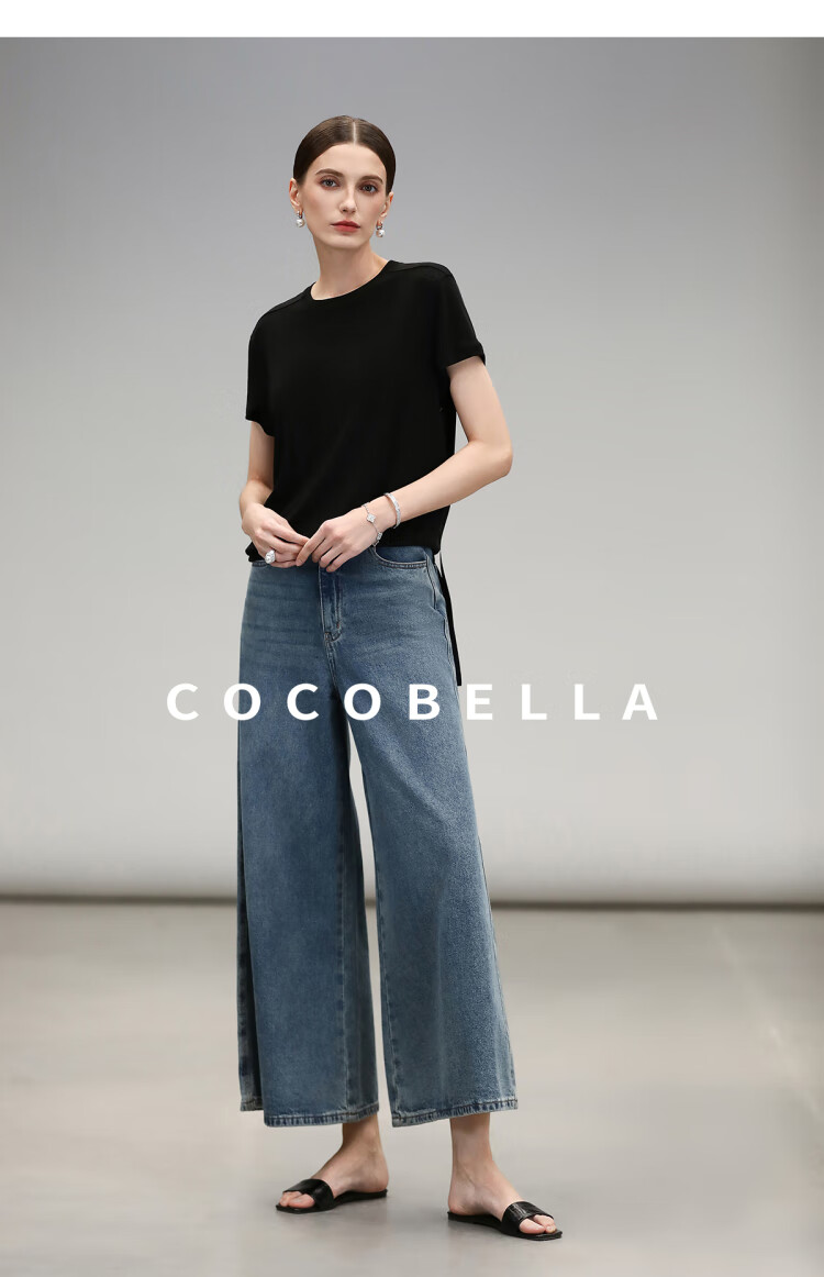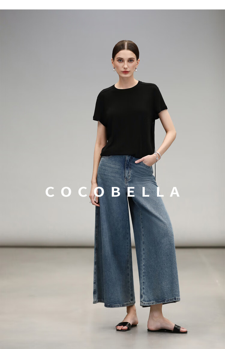 COCOBELLA呼吸感针织短袖T恤女夏简约黑色基础打底上衣TS0062