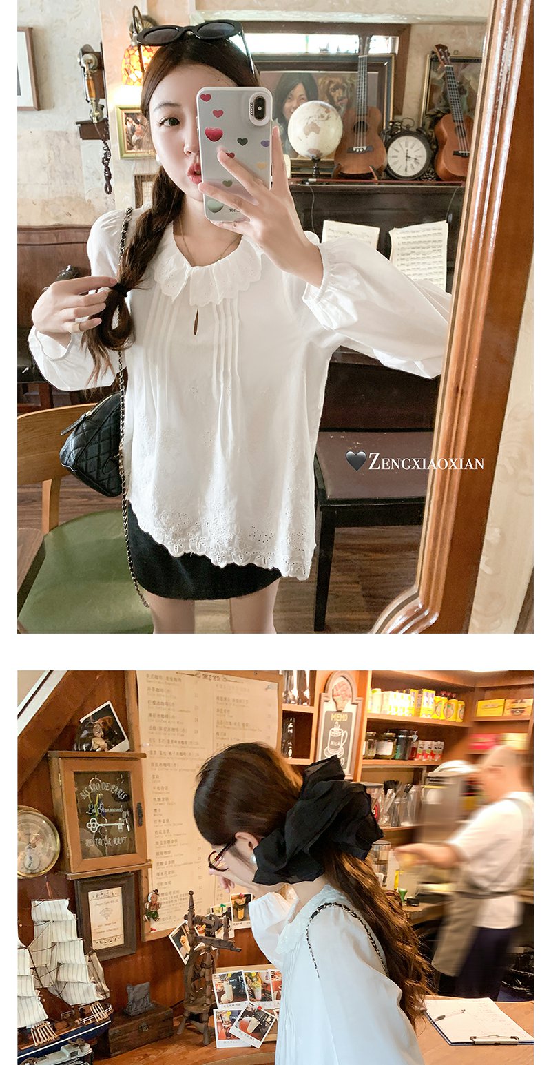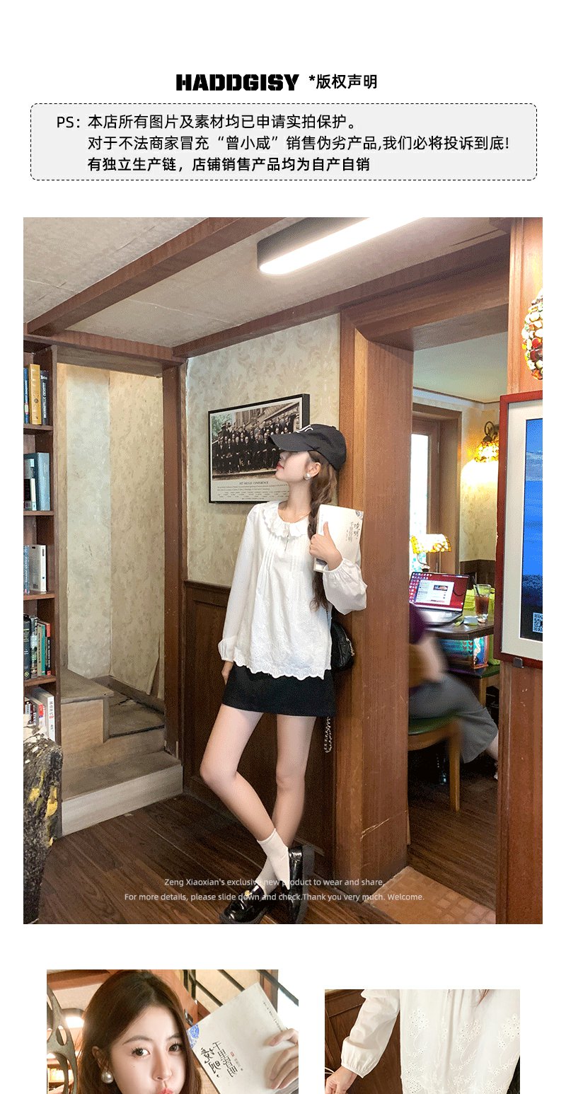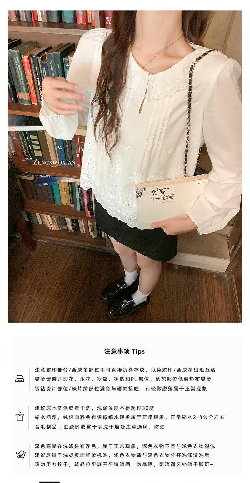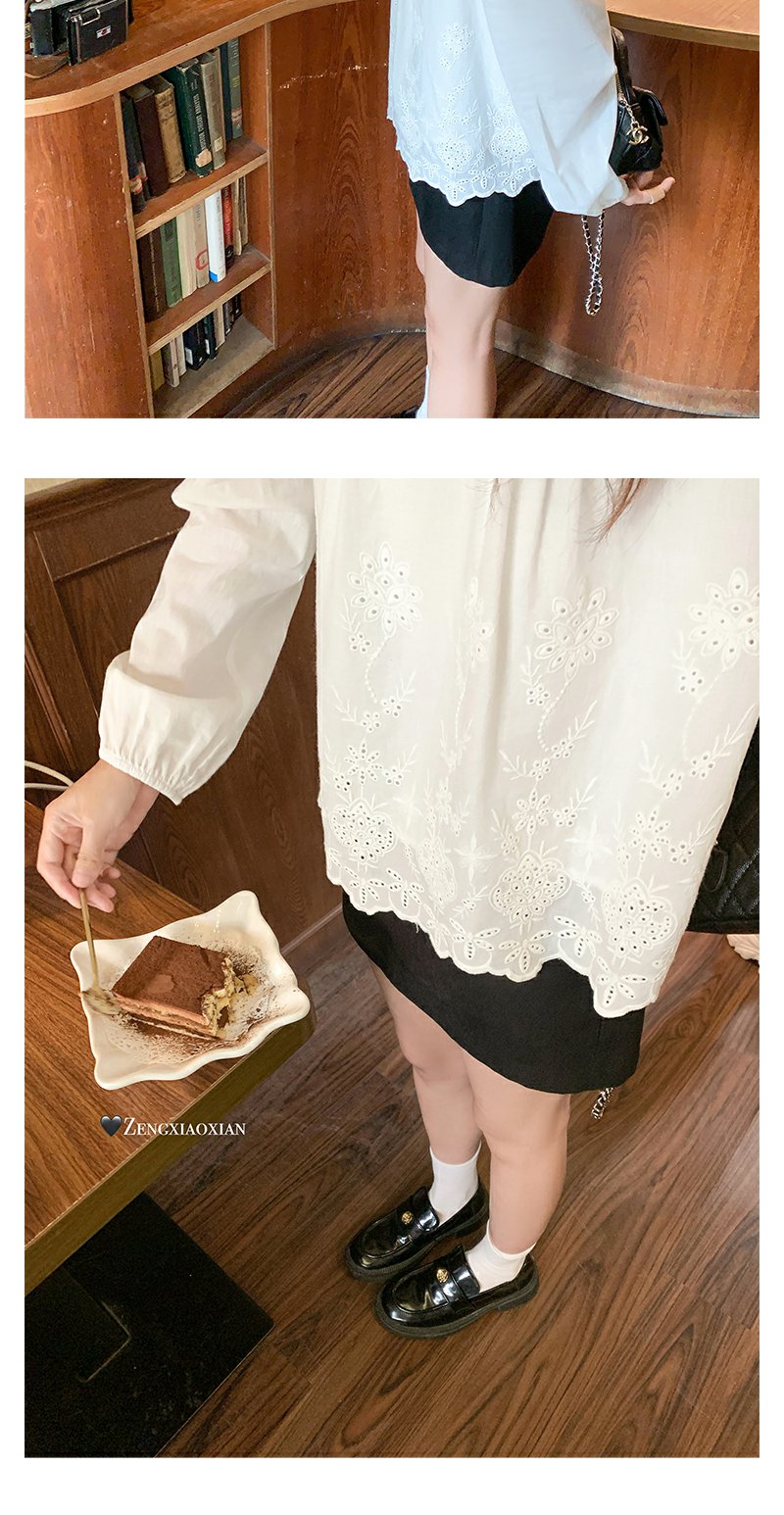 <曾小咸推荐>现货秒杀!微信超特价!韩系提花刺绣下摆不规则长袖衬衫 日常179.99 立减100 秒杀79.99!