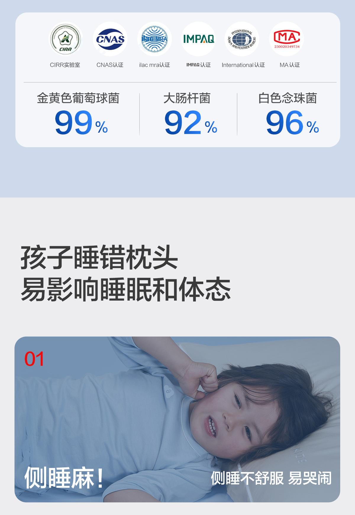 【水星儿童】可水洗机洗护脊枕母婴A类分区清爽透气枕芯学生儿童枕