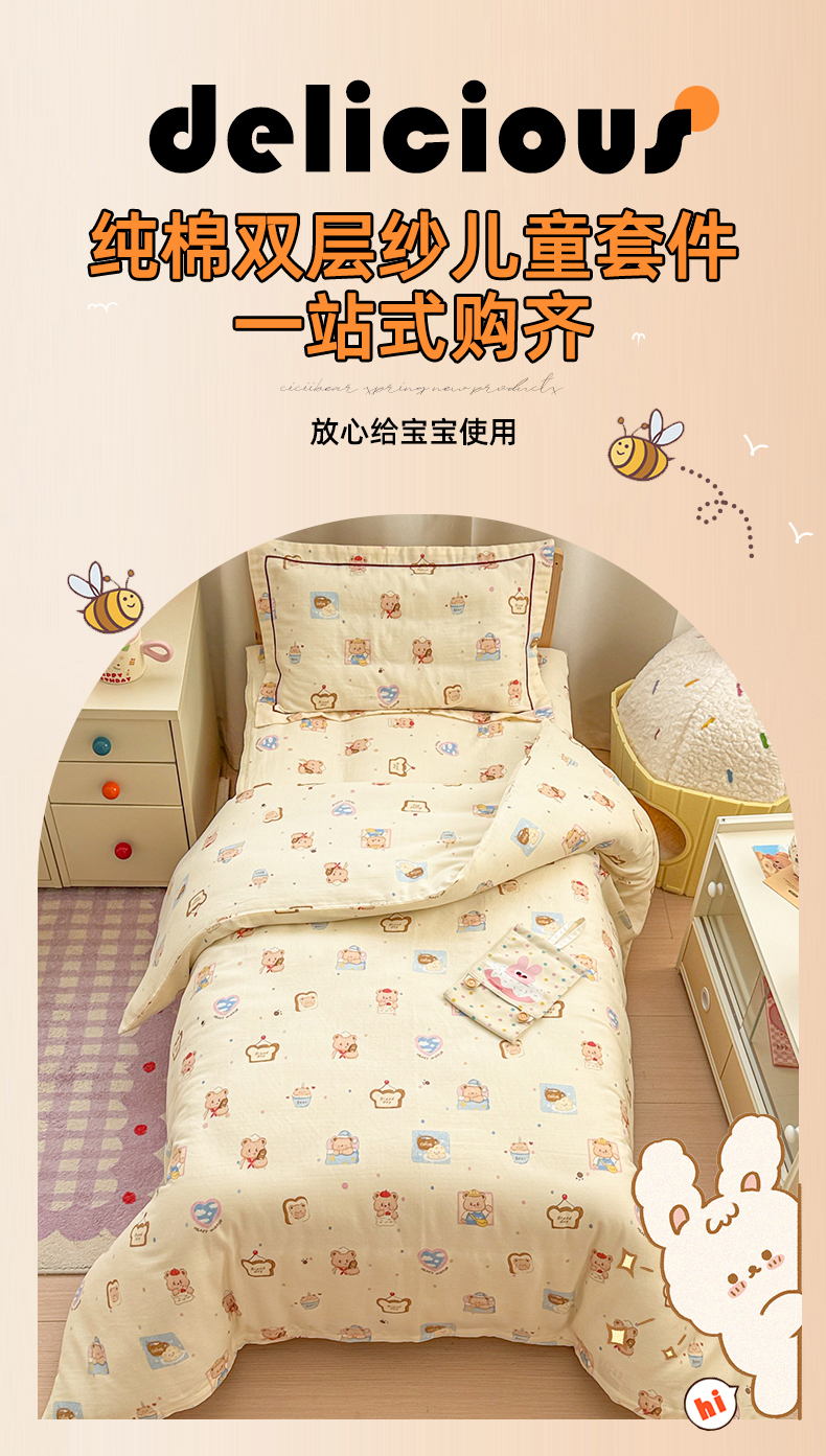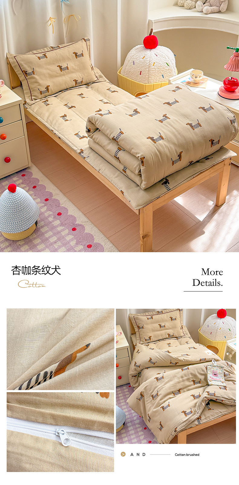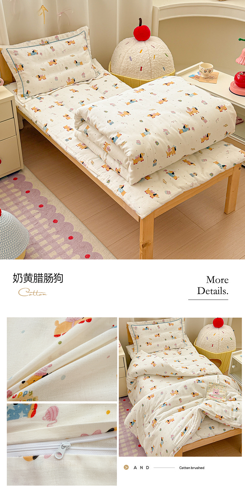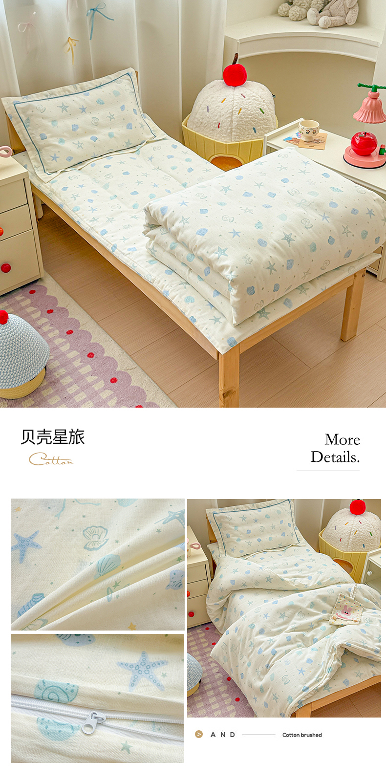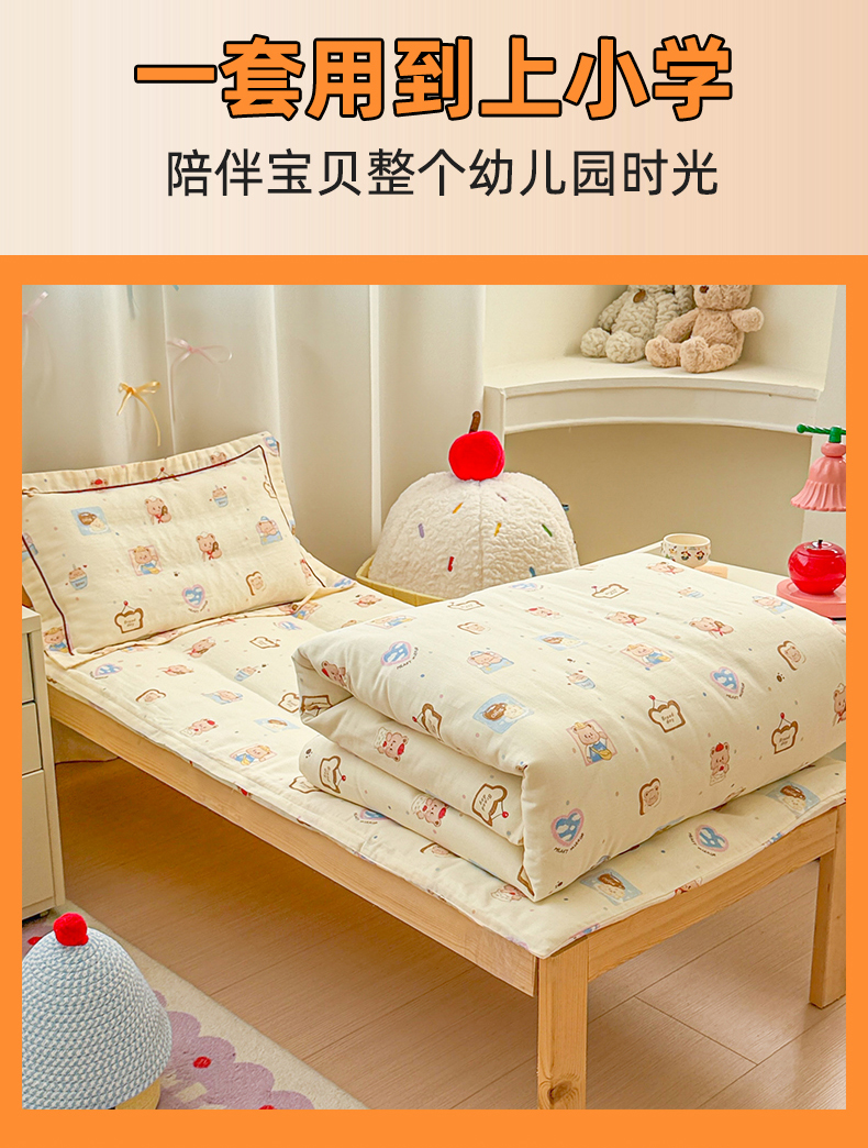 自然醒A类幼儿园全棉双层纱套件三件套六件套纯棉儿童被褥宝宝午睡床品JY