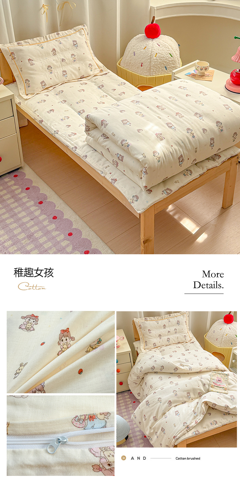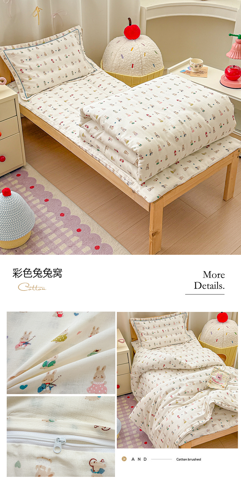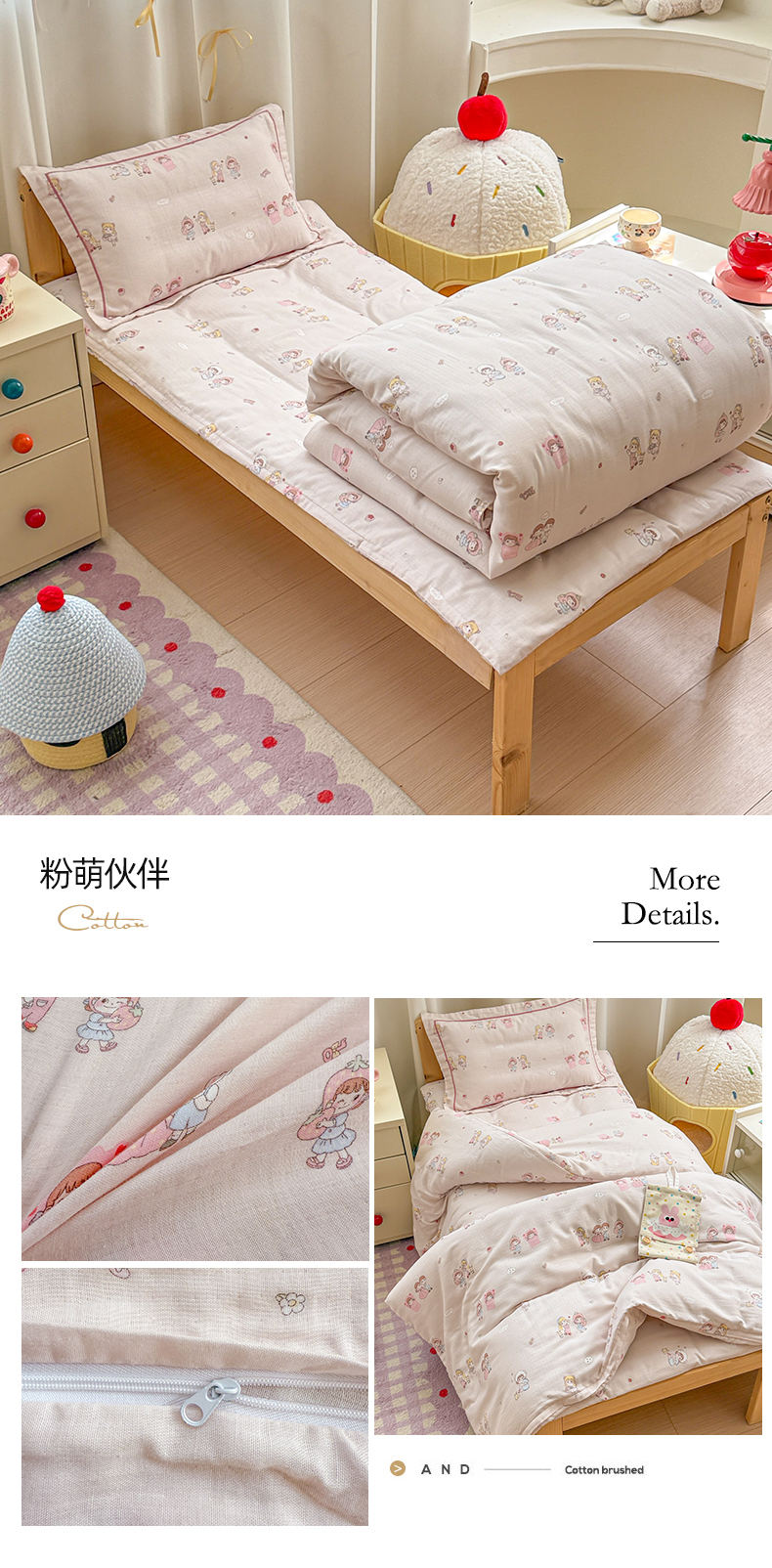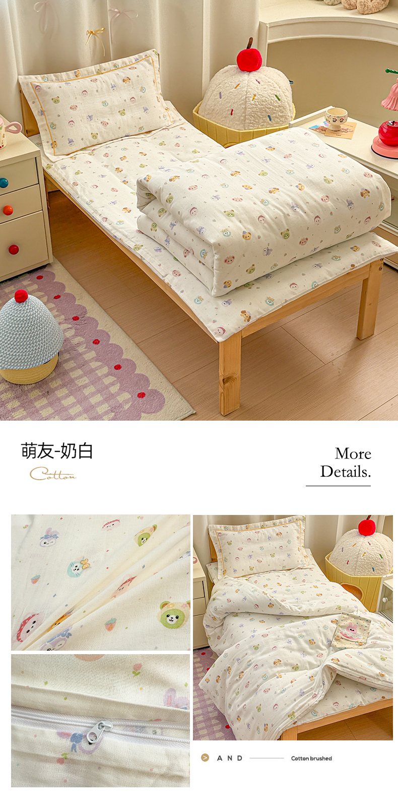 自然醒A类幼儿园全棉双层纱套件三件套六件套纯棉儿童被褥宝宝午睡床品JY